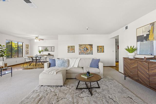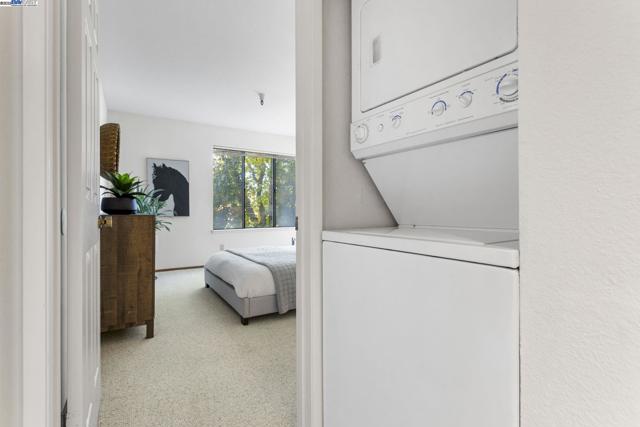 Spacious 2-Bedroom Corner Condo Just Steps from BART. Welcome to this light-filled 2-bedroom, 2-bath corner unit in a gated community at Pacific Plaza, just 2 blocks from San Leandro BART. Located on the 3rd floor near elevator access, this move-in ready condo offers 1,406 sq ft of comfortable living space with fresh paint, indoor laundry, and a large private balcony perfect for morning coffee or evening wind-downs. Enjoy the convenience of assigned parking, secure building access, and a community pool. HOA dues include water, trash, exterior maintenance, hazard ins. and gated parking. With easy access to downtown San Leandro’s shops, restaurants, and grocery stores, plus a highly walkable neighborhood, this home is ideal for buyers looking for comfort, space, and a commuter-friendly location.