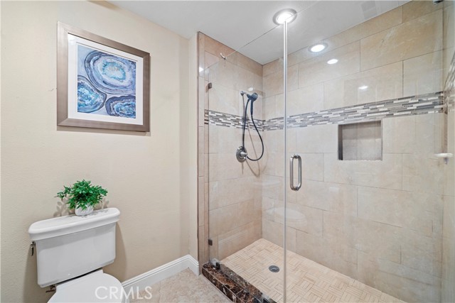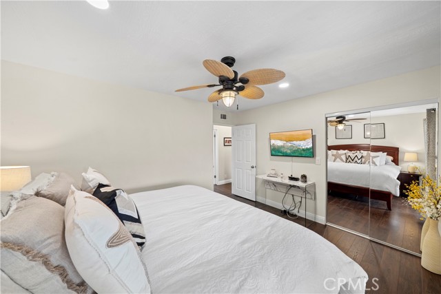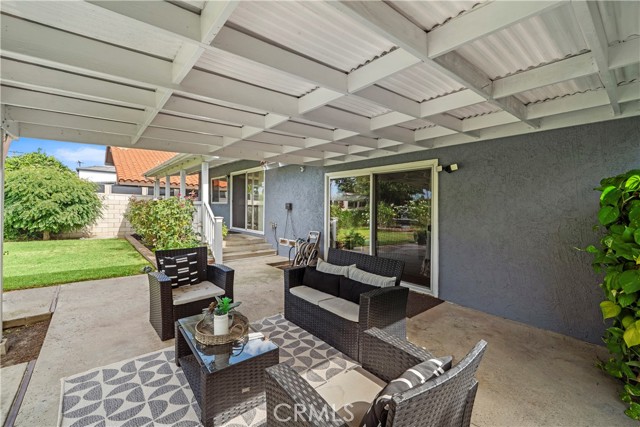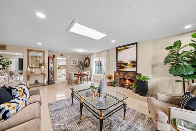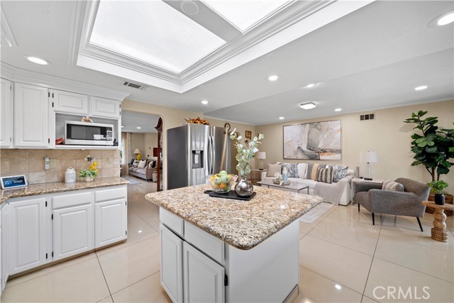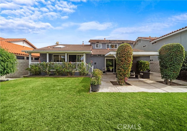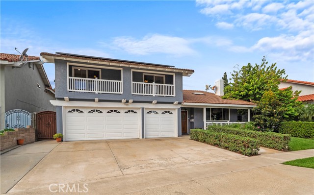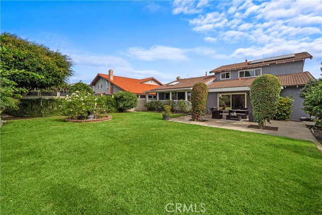 Stunning 5 bedroom, 2.5 bath home with PAID SOLAR, 3-car garage, and a truly exceptional park-like backyard, nestled on a cul-de-sac street in Fountain Valley’s premier La Linda neighborhood with award-winning schools and just four miles to the beach. Beautiful landscaping and a welcoming front porch greet you as you step through the custom double entry doors to its grand foyer with marble-style tile flooring that extends throughout the main living areas. It features many upgrades including a newer A/C and heating system, over $10K in epoxy pipe lining adding up to 30 years of life to the plumbing, dual pane windows and sliders, crown molding, recessed lighting, raised panel interior doors, and wide-plank wood laminate flooring upstairs. The bathrooms and kitchen have been remodeled using modern luxury finishes. It boasts an elegant formal living room and adjacent dining room with marble fireplace and skylight. The chef's dream granite kitchen is open to an inviting family room and features center island with seating, stainless appliances, custom white cabinetry with oversized pantry and lazy susans, and sliding doors that open to a back porch that overlooks the amazing park-like backyard and gardens. The expansive downstairs primary suite offers a spacious sitting area, slider to the backyard, walk-in closet with custom organizers, and a luxurious travertine-style bath with granite vanity. Upstairs there are four additional spacious bedrooms, including two that open to a balcony and a newly remodeled bathroom with granite vanity, tranquil soaking tub, and separate designer-tiled shower. Enjoy the backyard that is like owning your own private park with enormous lawn, flowering gardens, covered patio, and fountain - perfect for major entertaining! This magnificent residence combines elegance and comfort and is conveniently located near shopping, dining, parks, freeway access, and four miles to the beach.