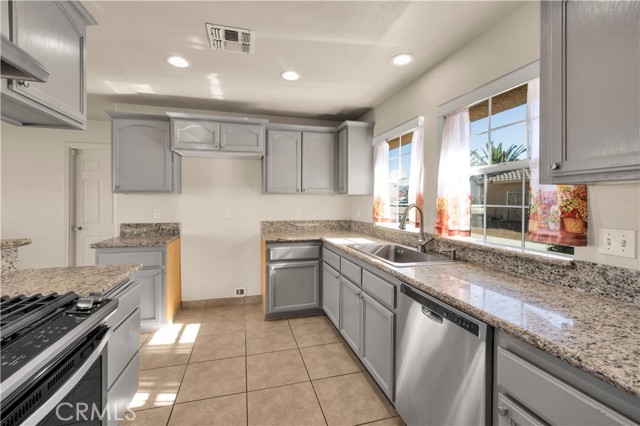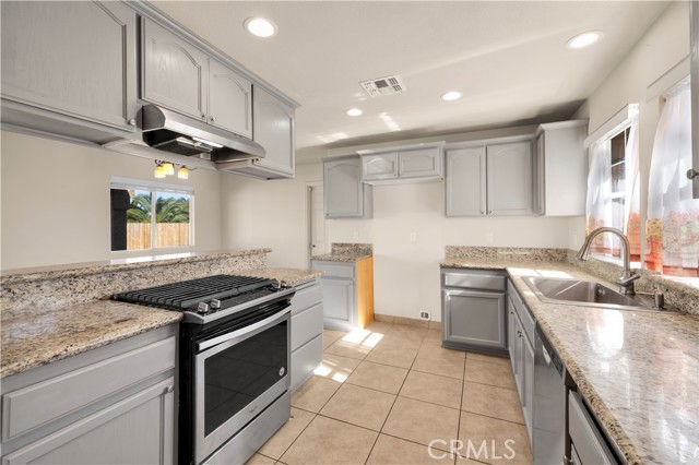Beautiful 4 bedroom, 3 bathroom home in a very desirable neighborhood. The comfortable primary suite features its own covered patio access, a nicely tiled walk-in shower, relaxing spa tub, granite counters, and a spacious walk-in closet. The hallway also offers convenient extra cabinet storage. The welcoming living room with its cozy fireplace opens easily to the kitchen and dining areas, creating a warm and functional layout. The kitchen includes granite countertops, bar seating, and plenty of room for cooking and gathering. A bonus family room provides versatile extra space that could also work well as a 5th bedroom, office, or play area. The fenced backyard has lovely views along with a covered patio and low maintenance fake grass, making it a wonderful spot for entertaining or a safe place for kids to play. Large windows throughout the home bring in plenty of natural light. Additional features include a 3 car garage, inside laundry room, natural gas appliances, attractive landscaping, and a concrete driveway. A truly inviting home that offers comfort, space, and a great location, a must-see.