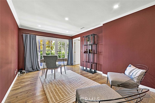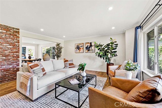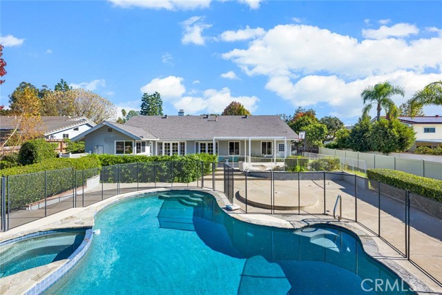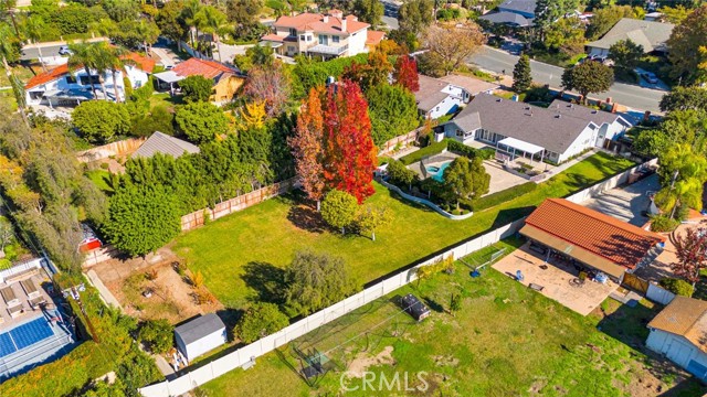 This distinguished single-story residence at 9531 Lemon Street epitomizes Villa Park living at its finest. Situated in the prestigious northeast quadrant on an expansive 26,095-square-foot parcel, the property presents exceptional opportunities for enhancement, whether one envisions a sports court or an accessory dwelling unit. The thoughtfully designed floor plan encompasses three bedrooms and a dedicated office—readily convertible to a fourth bedroom—all on a single level. Architectural details include a brick-capped perimeter wall, double-door entry with decorative glazing, and an abundance of natural light throughout the interconnected living and dining spaces. The well-appointed kitchen features professional-grade appliances and seamless indoor-outdoor connectivity. The primary suite provides a private sanctuary with direct patio access, generous walk-in closet, and luxuriously appointed en-suite bath complete with soaking tub and rain shower. The meticulously maintained grounds showcase a resort-style pool and spa within secure fencing, fruit orchard complemented by mature landscaping and substantial undeveloped space. A three-car garage with electric door openers completes this exceptional offering in one of Orange County's most coveted communities.