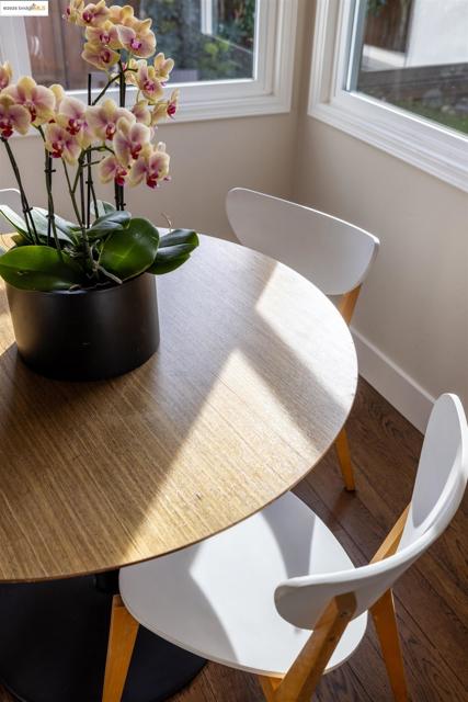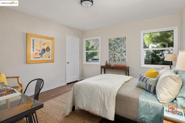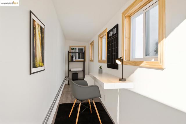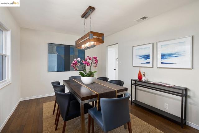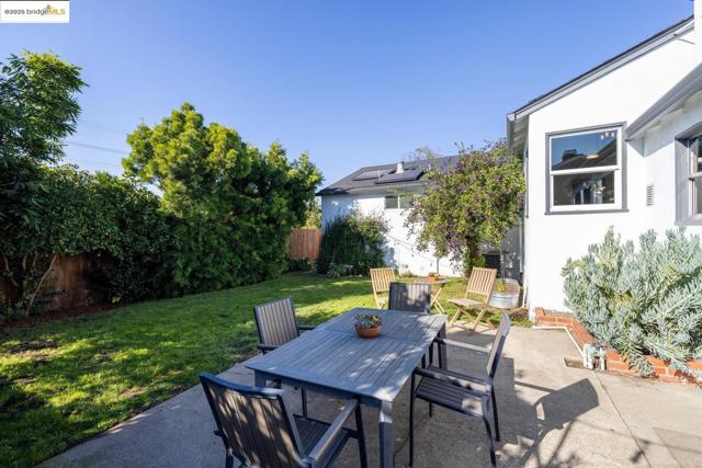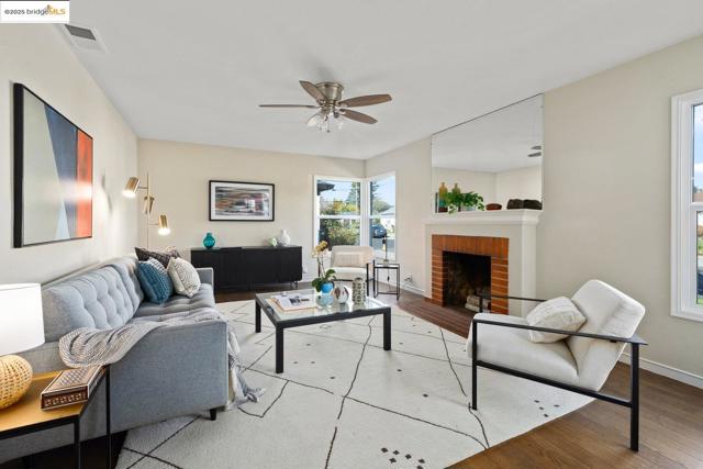 Welcome home to 1945 Bradhoff, a beautifully updated Mid-Century Modern California Ranch style home, tucked onto one of San Leandro’s most beloved “horseshoe” streets. This single-level, move-in ready 3-bedroom, 2 full bath home blends classic California charm with thoughtful modern upgrades throughout. Inside, enjoy a light-filled living room with real hardwood floors and a cozy fireplace. The Formal Dining Room opens to an updated eat-in kitchen with stainless-steel appliances, six-burner gas stove, stylish counters, and backsplash. The spacious primary en-suite at the back of the home offers two large closets and a tastefully updated bathroom. Two additional bedrooms and a full bath complete the layout. Upgrades include OWNED SOLAR, updated electrical, dual-pane windows, copper re-pipe, air-conditioning, Tesla EV charger, and newer furnace and appliances. Direct access from the garage into the home. The private backyard features a lawn, patio, mature lemon tree, and a detached “tiny office” ideal for work or hobbies. Buyer to investigate. Located just blocks from McKinley, Bancroft, Assumption, SLHS, Buyer to verify school district/availability, and downtown dining, breweries, and the Farmers’ Market. Homes on Bradhoff are rarely available—don’t miss this one. Welcome home!
