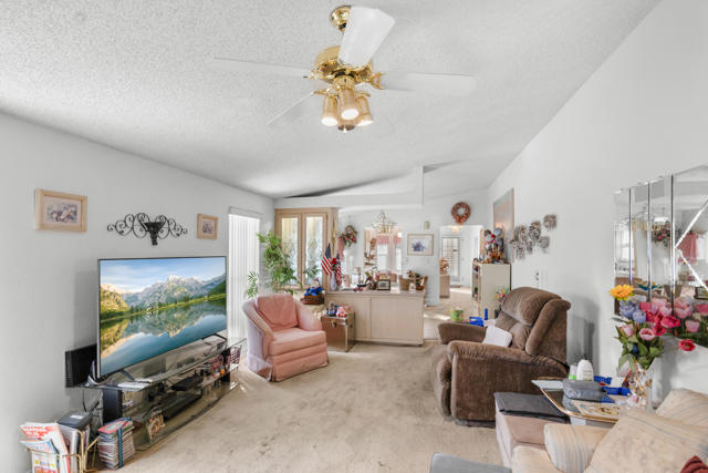 Welcome to Ivy Ranch, one of Thousand Palms most desirable gated senior communities, where you own the land and enjoy resort-style living surrounded by natural beauty. Situated on a prime golf-course location, this home offers sweeping Fairway and Mountain Views, creating a peaceful backdrop for everyday living.This charming property features 2 bedrooms, 2 bathrooms, and 1,510 sq. ft. of interior space. The home is in original condition, making it the perfect opportunity for investors, flippers, or buyers seeking a dream location they can update and make entirely their own.Ivy Ranch Country Club & Golf Course enhances the lifestyle with exceptional amenities, including a 9-hole golf course, Pro Shop, Driving Range, 4 community pools, 2 spas, Clubhouse, and a seasonal restaurant--all integrated seamlessly into a beautifully landscaped manufactured-home community.Don't miss this rare chance to transform a home with great bones in one of the area's most sought-after senior communities.