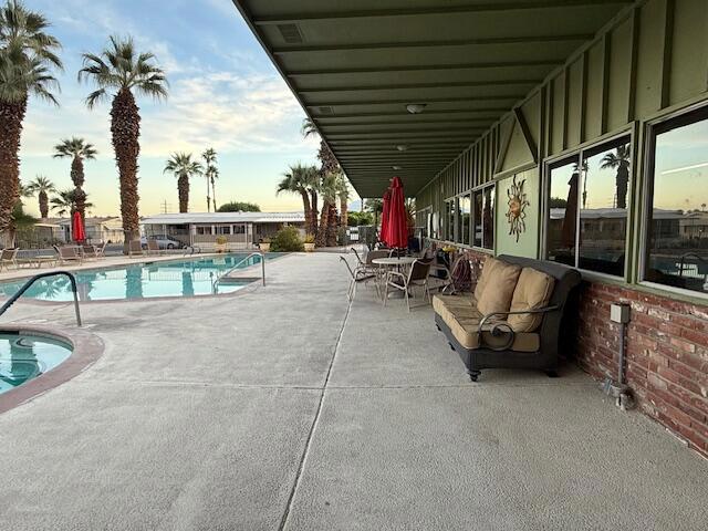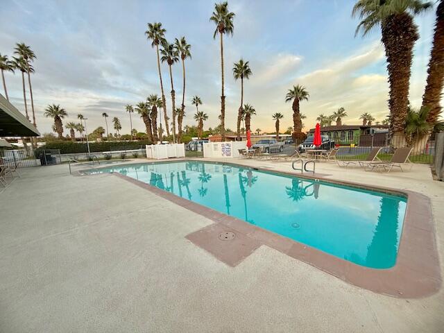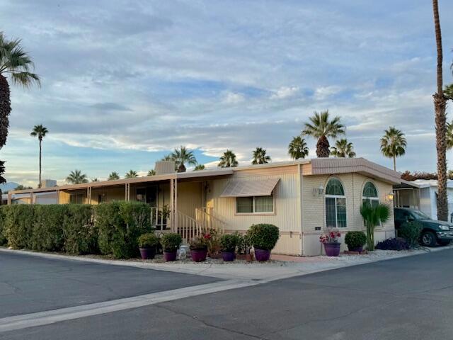 Great location, corner lot on this 1972 manufactured home, 55+ community Palmdale Estates Indio. 2 bedroom 2 bath with a living room and den area, great size patio facing a beautiful palm tree & mountain view. Pool area and clubhouse right across the street. Comes with some furniture included and appliances. Indoor washer & dryer. 2 storages. There is also a section at the rear of the park to park your RV this would make a great vacation spot. or fulltime residence. Owner occupants only. Must be approved by the park. Space rent $706. plus gas & electric. Call for a showing today!