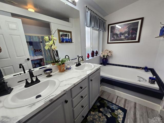 ALL AGES! Gorgeous home with an attached two-car garage in the highly sought after Woodcreek Estates, an all-age community. Step into this beautiful 3 bedroom, 2 bath home that perfectly blends comfort and elegance. Featuring soaring high ceilings and a stunning bay window. The living space is bathed in natural light, creating an inviting and spacious atmosphere; in addition, the fireplace is the center of attention in this room. The open floor plan flows seamlessly from the kitchen to the dining area and to the living room, where French doors lead the way to the patio, where you can enjoy the breathtaking views. This space is perfect for relaxing and/or entertaining. The large laundry room provides ample storage and convenience, while the attached 2-car garage offers easy access and additional space. Don't miss this rare opportunity to own a home that offers both style and functionality. 2 car garage with direct access to the home plus an additional driveway. LAZ3924.