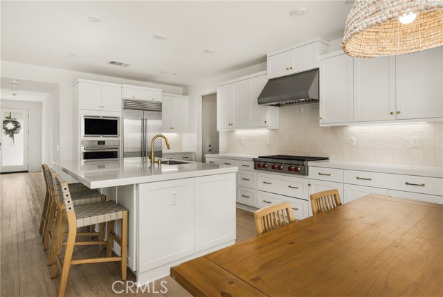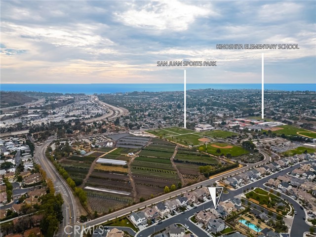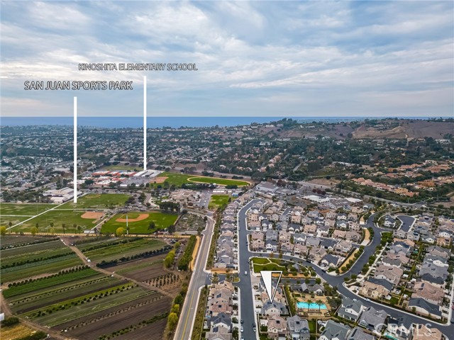 Welcome to this beautifully upgraded 2023-built home located in the gated community of The Farm in San Juan Capistrano. This modern residence offers 4 bedrooms, 4 bathrooms, PLUS an office with a bright and open floorplan designed for today's lifestyle. The main level features a spacious great room with abundant natural light, wide-plank flooring, and seamless flow to the covered California patio and low-maintenance backyard. The gourmet kitchen includes a large island, quartz countertops, Zellige tile backsplash, custom brass hardware, Sub-Zero refrigerator, Wolf range, and double ovens. A private downstairs bedroom and full bathroom provide ideal guest or multigenerational living. Upstairs includes a generous primary suite with a soaking tub, walk-in shower, dual sinks, and a large walk-in closet, along with two secondary ensuite bedrooms and a convenient laundry room. The outdoor space is thoughtfully finished with turf, modern pavers, and surrounding greenery for year-round enjoyment. Additional highlights include solar panels, a Tesla charger, and an attached two-car garage. The Farm is a newer gated enclave offering a pool, parks, walking paths, BBQ and picnic areas, and easy access to beaches, Dana Point Harbor, historic downtown San Juan Capistrano, shopping, dining, and top-rated schools. A rare opportunity to own newer construction with designer finishes in a prime coastal-close location.
