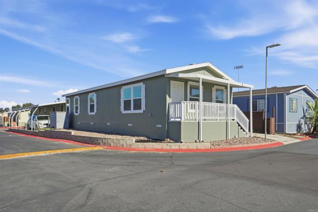 Welcome to Rancho Del Rio Estates #18! —A stunning Brand-New 2-Bedroom, 2-Bath manufactured home perfectly situated on a desirable corner lot in a sought-after All-Age Community. Step onto the welcoming front porch and enter an open floor plan with high ceilings that create a spacious, airy feel. The kitchen boasts abundant cabinetry, gas cooking, stainless steel appliances, and flows into a generous living room and dedicated dining area. Enjoy easy-care vinyl flooring throughout, a convenient laundry room, carport, dual-pane windows, a low-maintenance yard, and a home warranty. Residents have access to fantastic community amenities including a sparkling pool, playground, banquet room, and lush green spaces. This prime location is walking distance to Larsen Field Park/Sports Complex and Coral Gate Park, the world-famous Las Americas Outlet Center, restaurants, banks, public transit, and just minutes from grocery stores, the US/Mexico border and major freeways. Monthly space rent is $1,200. Don’t miss your chance—make this beautiful home yours before it’s gone! Some photos are virtually staged to show space ideas.