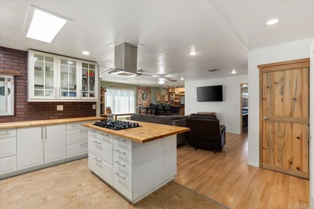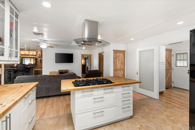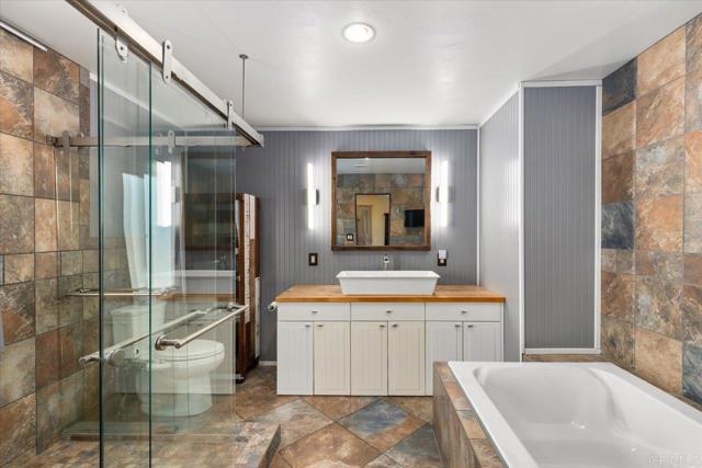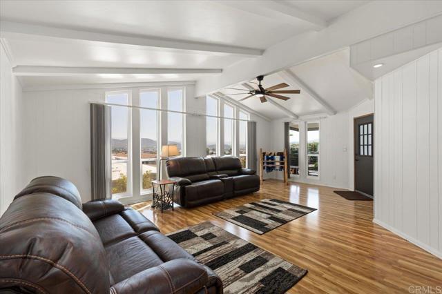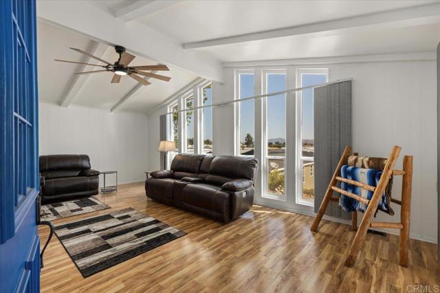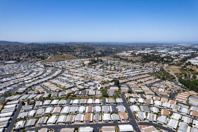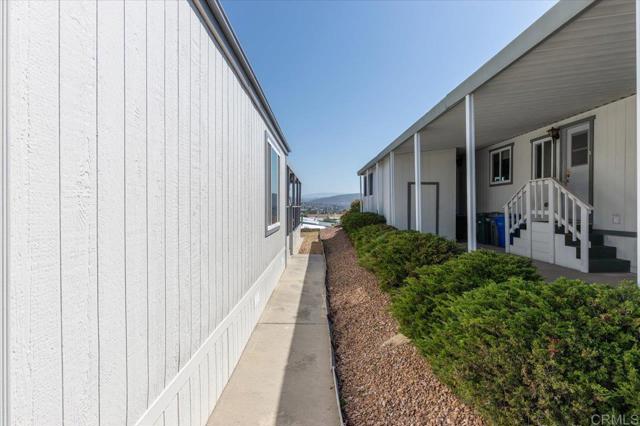 Beautifully remodeled 3 section home that sits high on top of a cul-de-sac street within in Rancho Vallecitos; a resort style 55+ community that is very social & active and has rent control! VIEWS from every direction; Sunrises, city lights, mountains, and winter snow caps can be enjoyed from your deck and Living room windows, while sunsets and a peekaboo ocean view can be enjoyed from the Primary Bedroom! The shed has been improved to be the max legal size and features an automatic garage door and can fit a motorcycle. The home has many other special upgrades including dual pane windows, refinished ceilings, custom interior doors and finishes, a newer 40 gallow water heater, updated Kitchen and Bathrooms, butcher block counters, wet bar, LED lights, and more! There is a spacious Living room with vaulted ceilings and high windows, as well as an additional Family room / Den and wet bar. The Primary Bedroom features a huge walk in closet and ensuite Bathroom with large custom shower and tub. The Guest Bedrooms has been converted to an office and also has it’s own ensuite Bathroom. The Utility Room is larger than most with extra space to double as an office work space. Convenient to guest parking. Monthly space rent is $740 per month and is under city rent control. 1 dog, or 1 dog & 1 cat, or 2 cats okay if < 20 lbs / no dog walking or permanent pet fencing allowed in park. There is a large dog park within this community just down the street from this home that you are allowed to walk your dog to. Age 55+ (2nd resident can be 45+), must be owner occupied.
