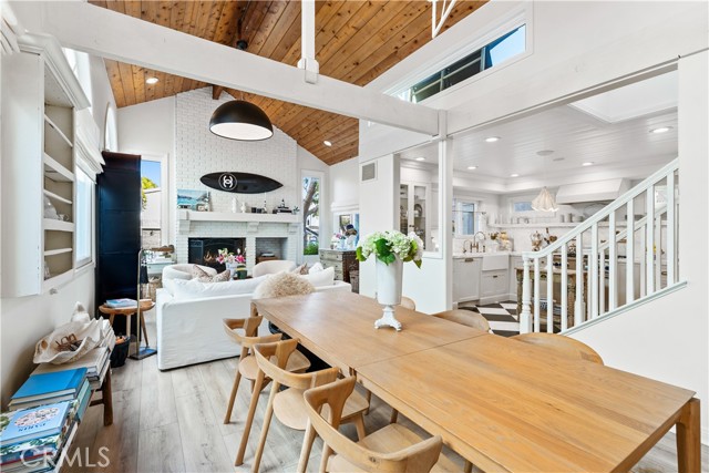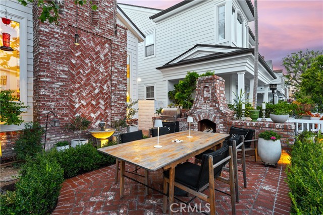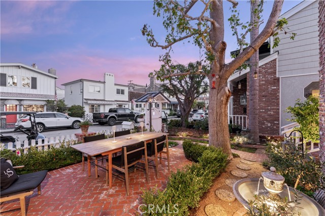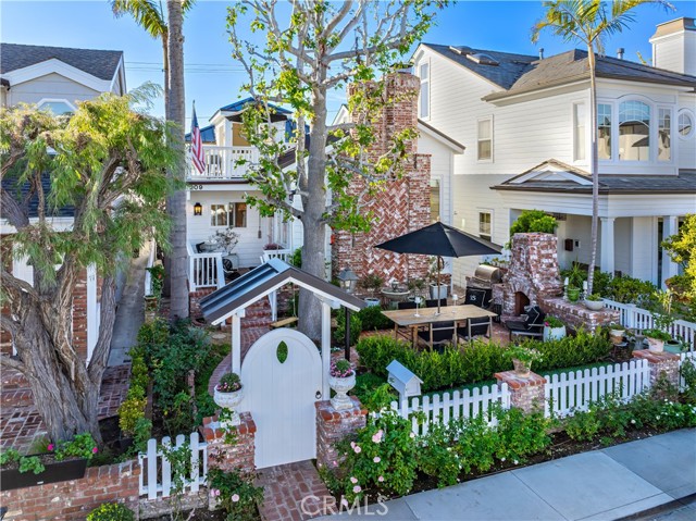 One-of-a-kind three-bedroom Balboa Island cottage offering one of the most exceptional front yards on the Island. The brick-lined garden includes mature landscaping, outdoor dining, a fireplace, barbecue, multiple seating areas, and a storybook tree with a hanging swing, creating a rare extension of everyday living and an ideal setting for relaxing or entertaining. Inside, the first level provides vaulted ceilings, warm living area with fireplace, separate dining space, bathroom, and a beautifully updated kitchen with high-end appliances and walk-in pantry, along with a garage that includes a sauna and private office or den. The second level offers a generous primary bedroom with fireplace, two guest rooms, two bathrooms including one with walk-in shower and freestanding tub, complete with access to an expansive private deck. Fully remodeled with a standing seam roof and thoughtful finishes throughout, this cottage is one of the Island’s most charming homes with outdoor space that is hard to match.