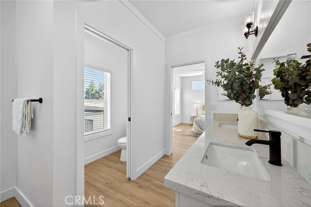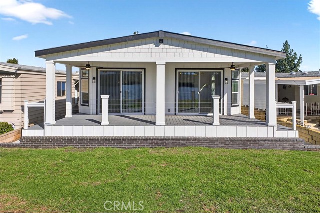 Welcome to the highly desirable 55+ community of Lake Los Serranos MHP. Experience luxury lakeside living in this brand-new home in a peaceful senior community in Chino Hills. This stunning lakeview property offers over 2,000 sq. ft. of beautifully designed living space and a spacious front porch overlooking the water—perfect for relaxing and taking in the view. Step inside to a bright and airy layout featuring a large living room, a gorgeous kitchen with a big quartz island, stainless steel appliances, and a walk-in pantry Skylights in the living room, kitchen, and bathrooms fill the home with natural light. The home includes 2 spacious guest bedrooms and a grand master suite with an impressive walk-in closet. The master bathroom features a private toilet area, elegant his-and-her vanities, and a beautifully crafted walk-in shower. Additional features include a utility room with side-by-side washer/dryer hookups and a side-by-side carport for easy parking. Enjoy all the wonderful amenities this community has to offer and start creating new memories in this one-of-a-kind lakeside home.