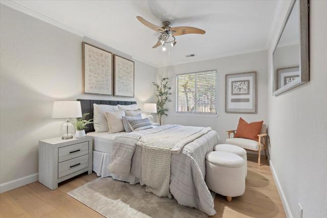 Beautifully updated three-bedroom, two-bath home plus den, nestled in the desirable Vasona Lake neighborhood. Vaulted ceilings give the space a light and airy feel. Brand new European white oak hardwood floors and interior paint throughout. The kitchen is outfitted with stainless steel appliances. The backyard features an outdoor kitchen and a bonus detached office/playroom. With direct access to Vasona Park trails this is the quintessential California lifestyle you've been waiting for. Top rated Los Gatos schools!