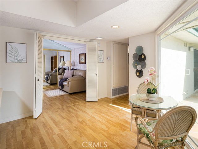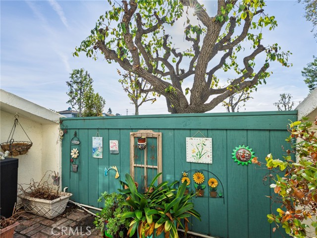Your Tranquil Oasis Awaits! Relax, recharge, and rediscover the joy of home in this beautifully situated, ONE-LEVEL sanctuary within the highly desirable Garden Green community! This bright, open-concept 3-Bedroom, 2-Bath home offers a unique blend of privacy, convenience, and charm, making it a true SoCal gem! Enjoy the ease of one-level living with no shared walls and a spacious 2-car, direct-access Garage. Located in a special, tranquil spot, you're just steps from guest parking, the sparkling Pool/Spa/Picnic Area, and mailboxes, all while being surrounded by lush green space - perfect for kids or a peaceful stroll. The inviting Living Room features a beautiful fireplace focal point and a sliding door that opens to a private Patio, seamlessly extending your indoor/outdoor living space. The formal Dining Room boasts a built-in curio/china cabinet, perfect for showcasing your treasures. A central, private enclosed Atrium floods the home with natural light, accessible from the Living Area and the Main Bedroom. The bright, modern Kitchen features a Breakfast Bar, Pantry, skylight, and a window over the sink. The adjacent Breakfast Nook enjoys a delightful atrium view—it feels like sipping coffee in a charming Paris café! The private Main ensuite Bedroom offers a walk-in closet and glass doors leading to the Atrium for abundant light and air - you can just step outside in privacy! The Ensuite Bath includes an updated step-in shower and a separate vanity. Two additional Bedrooms feature mirrored wardrobes. Bedroom 2 opens to a quaint brick Patio, enclosed by attractive vinyl fencing and Bedroom 3 is currently used as an Office/Guest room with built-in desk. Enjoy the resort-like feel of the Garden Greens community, featuring lush grassy Greenbelt areas, a sparkling Pool and Spa, Picnic Area, and convenient Guest Parking. With newer laminate flooring and high ceilings, this home is move-in ready. Conveniently located near top-rated schools, shopping, easy freeway access, and world-class Southern California beaches! Don't miss the chance to make this serene retreat your own! Be sure to view 360 degree virtual tour that will show every angle.