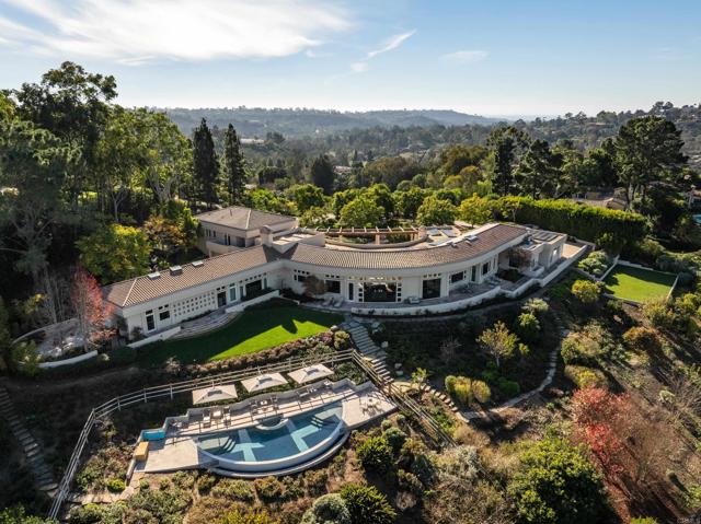 LIVE Artfully ELEGANCE REIMAGINED Restored and thoughtfully updated in 2023, this iconic Ken Ronchetti–designed Covenant estate is a masterpiece of architecture, landscape, and light. Perched above the Rancho Santa Fe golf course on an elevated 2.63-acre site, the residence offers ever-changing 360-degree vistas—sun washed fairways, sculpted mountains, twinkling evening lights, and the distant Pacific shimmering at the horizon. A LIVING SANCTUARY Inspired outdoor environments by award-winning landscape artist Takendo Arii elevate the property into a private resort of natural beauty. Meandering pathways lead through Asian influenced gardens, tranquil koi ponds, a cascading waterfall, a Zen garden, bermed terraces, a greenhouse, and sustainable raised vegetable beds and fruit trees. Every step invites serenity. ARCHITECTURAL LUXURY Sweeping curvilinear walls, dramatic glazing, and a signature pivoting zinc-alloy entry door introduce approximately 8,202 square feet of refined interiors. Updated in 2023 with a sophisticated, modern sensibility, the home blends fossil stone, Australian sandstone, boxed ceilings, and exotic koa, zebrawood, and eucalyptus finishes. Gallery-scale hallways and custom art lighting create an ideal canvas for showcasing an exceptional art collection. LIVABLE GRANDEUR Five ensuite bedrooms and eight baths include a reimagined, five-star primary suite—featuring a granite fireplace, serene sitting area, cove-lit ceilings, and a spa-worthy bathing experience with a jetted tub framed by a floor-to-ceiling window and luxurious marble surrounds. A CHEF’S HAVEN The kitchen, architecturally new in 2023, is designed for gourmet artistry and effortless daily living, with custom cabinetry, stone surfaces, high-end appliances, and an inviting breakfast room bathed in natural light. AN ESTATE FOR ENTERTAINING Expansive stone terraces, a gated entrance, a four-car garage, a resort-style pool from the original designer – these thoughtfully designed grounds offer endless possibilities. This is a home equally suited for extraordinary gatherings and peaceful, private retreat. WHERE ART, ARCHITECTURE & NATURE CONVERGE A rare offering within the Rancho Santa Fe Covenant—restored, renewed, and ready to inspire for decades to come