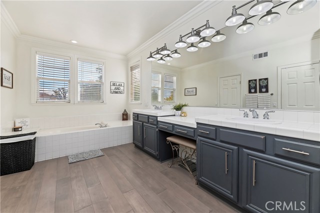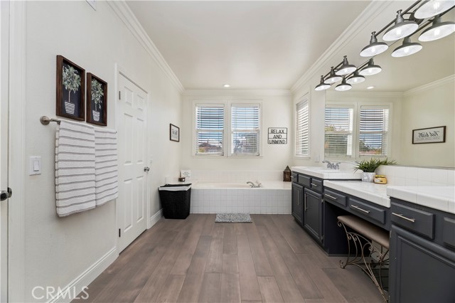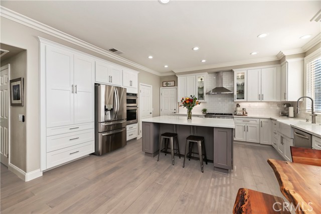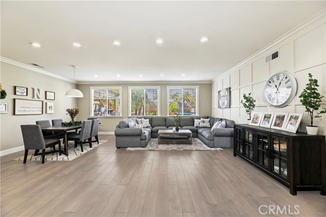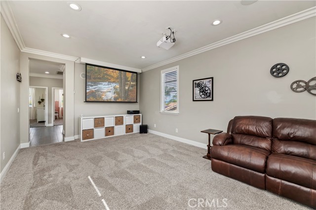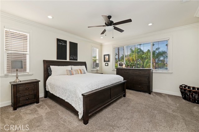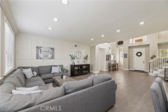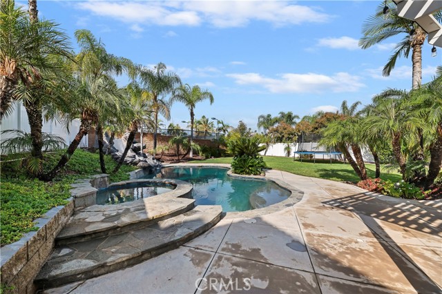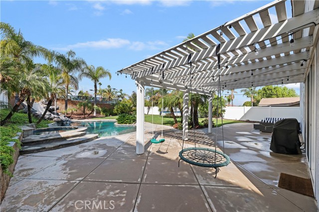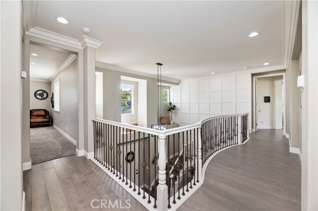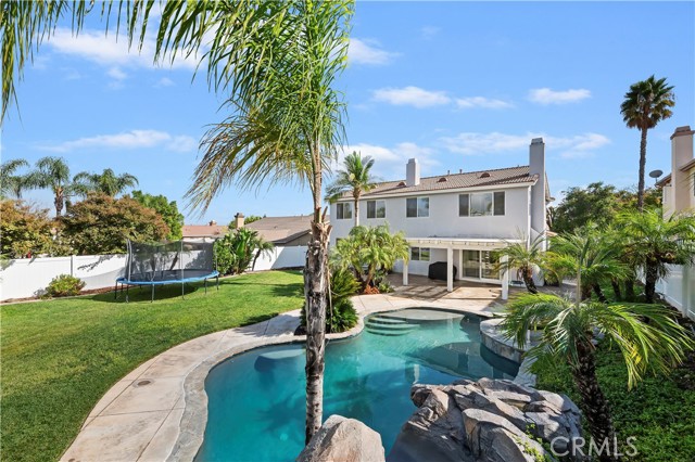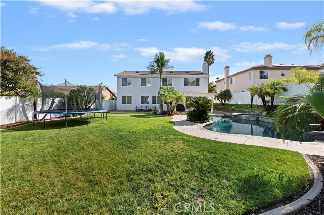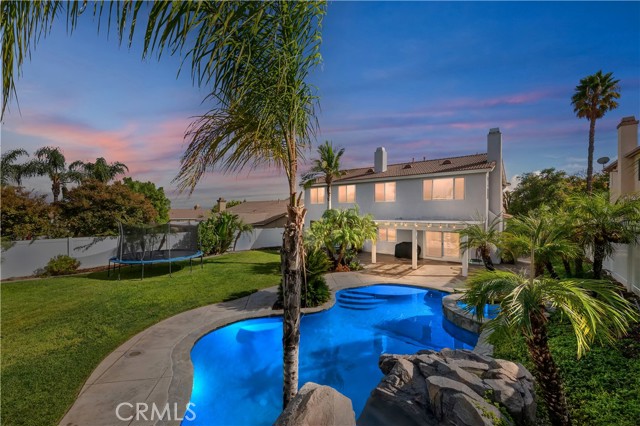 Nestled in the scenic green foothills of Corona, this stunning turnkey home blends modern upgrades with timeless comfort. The freshly painted exterior and manicured landscaping create an inviting first impression, leading into an elegant interior filled with natural light and refined design. Inside, soaring ceilings, new engineered hardwood floors, and a recently refreshed banister set the tone for the open and spacious layout. The living and dining areas flow seamlessly into the family room and a beautifully renovated kitchen featuring crisp white cabinetry, a large center island with quartz countertops, subway tile backsplash, and new KitchenAid appliances—complemented by a premium Thermador stove. Two large bedrooms are conveniently located on the main floor, one offering its own private entrance—perfect for guests, extended family, or a home office. Upstairs, the primary suite serves as a peaceful retreat with a cozy fireplace, sitting area, and a spa-like bathroom. Each of the home’s three bathrooms has been updated with new toilets, while all bedrooms feature new carpet for a soft, fresh feel. There is also a large bonus room upstairs that currently being used as a theater room. Additional upgrades include a new dual-zone HVAC system, a tankless water heater, and new baseboards throughout. Step outside to your private resort-style backyard, where a sparkling Pebble Tec pool and spa create the perfect space for entertaining or relaxing. The pool area has been enhanced with new equipment, updated lighting, and a freshly painted slide, all surrounded by lush tropical landscaping and newly installed vinyl fencing for privacy. A large attic provides generous storage, and the home’s prime location offers easy access to shopping, dining, supermarkets, and top-rated schools. Combining thoughtful upgrades, modern finishes, and an unbeatable setting, this exceptional property captures the best of Southern California living.