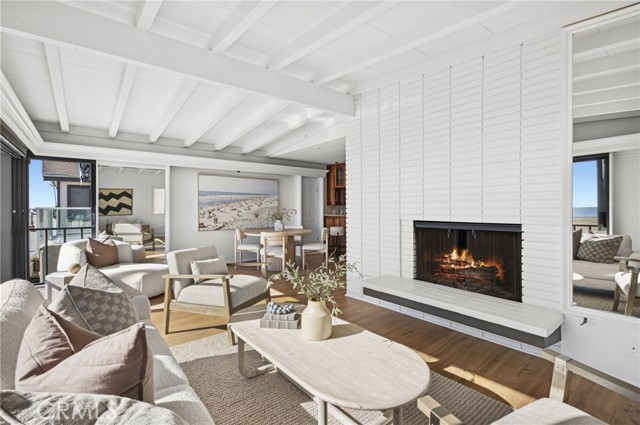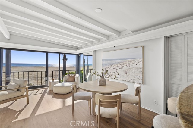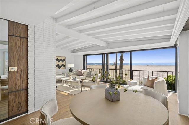 An extraordinary opportunity to own an oceanfront triplex perfectly positioned along the Newport Beach boardwalk, offering panoramic coastal views and an unmatched beachside lifestyle. The property consists of three spacious residences each thoughtfully designed with comfort, functionality, and coastal living in mind. The upper front residence is filled with natural light and features a living room with dramatic skylights, wood floors, and abundant storage. The kitchen includes stainless steel appliances, granite counters, and oceanview sightlines. A second living room showcases a fireplace with a masonry wall and hearth, vaulted beamed ceilings, a Juliette balcony, and sweeping beach and ocean views. The layout includes two bedrooms, a full bath with tub and shower, a laundry room with sink, a walk-in shower, and a spacious skylit walk-in closet. An upper loft with an office area leads to a rooftop deck ideal for enjoying coastal breezes and sunset vistas. The front lower residence sits directly along the boardwalk and includes a generous patio overlooking the sand. The living room features walls of glass capturing ocean panoramas and a fireplace with a masonry surround. The kitchen offers a breakfast bar and expansive counter space. Three bedrooms include a primary suite with an adjoining bath, providing excellent flexibility for guests or long-term use. The back residence offers a private retreat with a Dutch door entry, a wetsuit rack, a cozy dinette, and a living room with a fireplace. The bedroom includes an attached bath, and a balcony creates a peaceful outdoor escape. A central courtyard connects the homes, and an oversized two-car garage with a communal laundry room and additional bath completes this exceptional offering. Whether as a legacy property, income-producing asset, or multi-generational retreat, this oceanfront triplex combines location, lifestyle, and iconic boardwalk frontage. Positioned steps from Marine Park and minutes from dining, recreation, and Newport’s coastal amenities, it presents a rare opportunity to own a versatile, prominently located property, an offering seldom available on the Newport shoreline.
