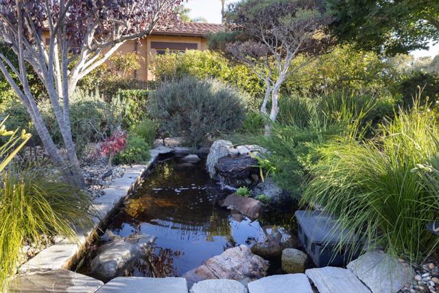 Just steps away from Quail Golf Club and Edgars, this single level home at the end of a quiet cul-de-sac has just gone through an impressive makeover neutralizing and modernizing throughout. Improvements include fully remodeled primary and guest bathrooms, added half bath, updated kitchen, new laundry room, built-ins, aluminum clad sliding doors, California closets, fence along golf course, repainted interior & exterior, enclosed storage above garage, installed Black Diamond Pavers patio w/built-in fire pit. A garden-lined walkway welcomes you to a formal entry which flows to the vaulted ceiling living room surrounded by windows featuring a massive stone fireplace. Double French doors open to a beautifully landscaped paradise with expansive paver patio, firepit, and soothing waterfall ideal for relaxing and entertaining. Designed to enjoy nature from every room, multiple private patios can be accessed from each bedroom and family room. Updated chefs delight kitchen has small eat-at bar open to family room, quartz countertops, stainless steel appliances, & abundant extra storage. Primary suite features raised ceiling, walk-in closet, and bathroom w/shower stall & soaking tub. Come enjoy all the Quail lifestyle offers in this private, move-in ready home!