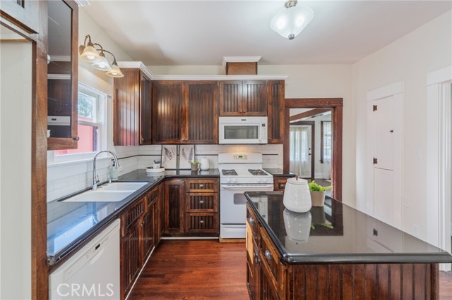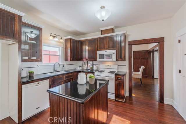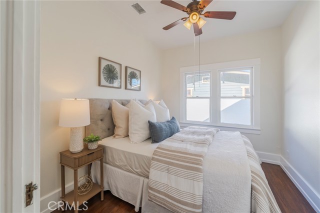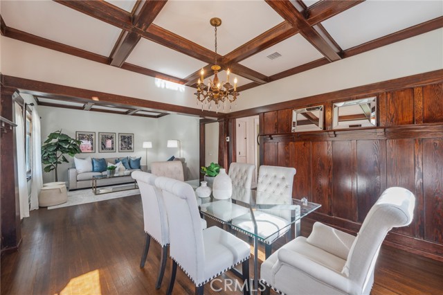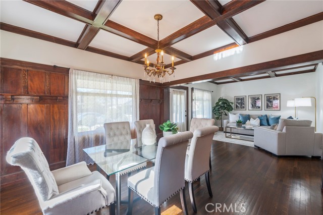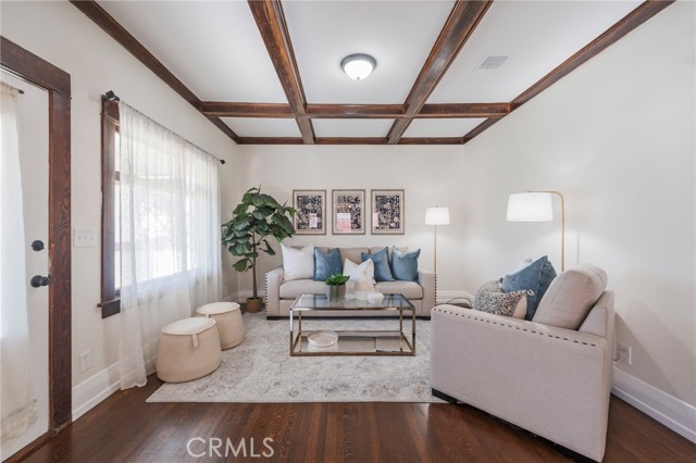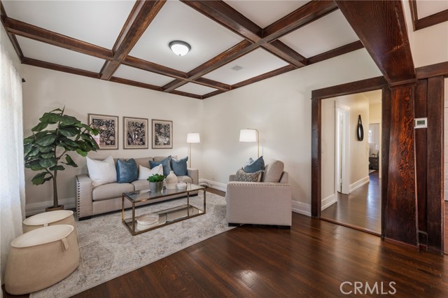 Step into the timeless charm of this quintessential Craftsman Bungalow, an immediate eyecatcher with its significant street presence, large front-facing gable, and an expansive, welcoming front porch. Upon entering, you will be in awe of the stunning period details, including coffered ceilings and polished oak hardwood floors that flow throughout the home. The main living area features a formal living room and dining room, accented by beautiful wainscoting and a cozy bench nook. The kitchen skillfully reflects the home's period with substantial cabinetry while offering modern convenience with a solid granite surface countertop, central island, and a convenient breakfast nook. A glass door leads from the kitchen to the perfectly manicured, private backyard oasis. The home offers three spacious bedrooms and two full bathrooms. Modern amenities include central air and heat, and additional storage is provided by a usable basement. A two-car detached garage features a dedicated laundry area. Location & Lifestyle: This home is situated on a highly-desired, pride-of-ownership street known for its historic bungalows and friendly neighborhood feel. Enjoy an incredible walkable lifestyle: you are just a 10-minute stroll to the Packing District, Center Street Promenade, weekly farmers markets, and local events. It is also only two miles from Disneyland and one block away from Pearson Park—home to a duck pond, seven tennis courts, and the Kobe Bryant Memorial Basketball Court. Significant Financial Benefit: According to the owner this property is already qualified for the Mills Act, with only a few items left to finalize. The Mills Act offers the significant benefit of a property tax credit, potentially reducing your annual property taxes by up to 60% in return for maintaining the historic character of the home. Don't miss this rare opportunity to own a piece of Anaheim history with substantial financial advantages!