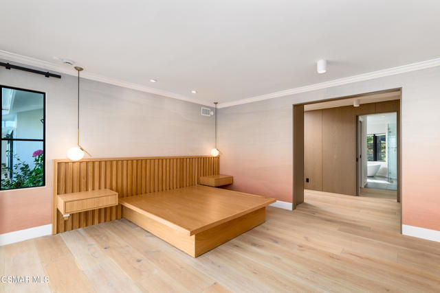 Gorgeous, fully upgraded single-story estate on a private 3/4-acre view lot in the charming, gated community of Los Robles Hills Estates. This beautifully renovated home offers exceptional curb appeal with lush landscaping, smooth stucco exterior, high-end Euroline black steel windows, sliders and accordion doors, contemporary lighting, and a gated front courtyard with paver hardscape.The dream entertainer's yard is a true showpiece--featuring sweeping views, a remodeled pool with motorized cover, brand-new spa, new hardscape, large grass areas, outdoor speakers, abundant fruit trees, and a large StruXure Pergola X motorized patio cover with built-in heating, fans, and lighting. Enjoy an outdoor kitchen equipped with a Hestan BBQ & side burner, refrigerator, and an outdoor fireplace. The smooth coat stucco privacy wall matches the home for a seamless, modern aesthetic. There is also large side yard with many fruit trees and herb garden. Inside, the sprawling one-story floorplan showcases an impressive chef's kitchen with quartz counters, Wolf, Miele & Bosch stainless appliances, glass lighted cabinets, a large island, two skylights, and a breakfast area that opens to the family room with custom fireplace. The expansive living room features a fireplace, high beamed ceilings, and fully opening steel accordion doors--perfect for indoor-outdoor entertaining. An office with high beamed ceiling & fireplace complements the four spacious bedrooms, including a stunning primary suite with views, custom cabinetry, wood floors, walk-in closet, quartz counters, dual sinks, a large frameless glass shower with rain head, and a soaking tub with a dramatic ceiling-fill feature.Additional upgrades include Euroline steel windows and doors throughout, wide-plank matte wood flooring, crown molding, updated bathrooms, two tankless water heaters, dual-zone HVAC, new recessed lighting and fixtures, built-in speakers in living and family rooms, 3 car garage with epoxy flooring and custom doors, closet organizers, and an oversized laundry/mud room with sink, wine cooler, and extensive cabinetry.Close to golf, hiking and biking trails, this is a gorgeous dream home offering privacy, views, luxury finishes, and premier indoor-outdoor living at its finest.