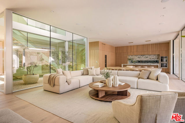 A stunning brand new warm contemporary by Wylan James. Featuring an incredible blend of design and architecture located on one of Brentwood's most prime streets. A stunning light filled entry and living room with center courtyard & open floor plan are perfect for large scale entertaining or intimate gatherings. High ceilings, walls of glass and warm light woods throughout create a calming ambience. An Incredible kitchen, family/great room open to the private grassy garden and pool, office, theatre, gym/wellness area, and separate guest house. There is a large primary suite with huge closets and luxurious spa like baths. Incredible materials, craftsmanship and exacting details for the most discerning.