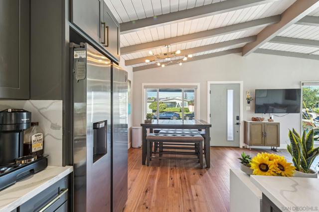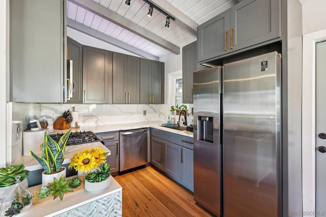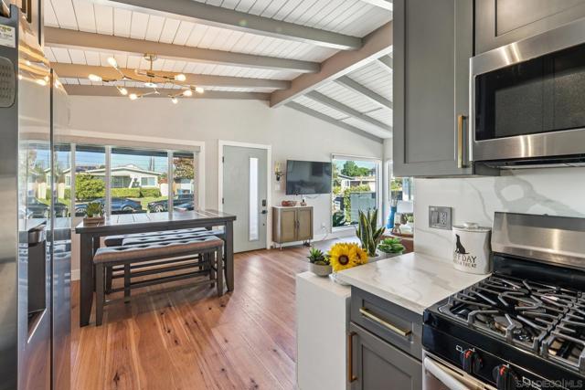 LARGE LOT WITH HUGE POTENTIAL TO ADD ADU'S * 10,900 SQ FT MOSTLY FLAT CANYON VIEW LOT * MAIN HOUSE IS FULLY RENOVATED * NEW RESORT STYLE Discover a truly exceptional, fully renovated single-story home in the heart of Serra Mesa, set on a rare large canyon lot. From the moment you step inside, the picture window and vaulted ceilings fill the home with uplifting natural light, creating an open and inviting atmosphere. The custom kitchen, featuring striking quartz countertops, grey shaker cabinets, gold finish handles and stainless steel appliances, flows effortlessly into a spacious living area enhanced by sleek vinyl flooring. The primary suite opens to an incredible private deck and backyard, the perfect place to unwind, while an expansive covered patio invites effortless summer entertaining. Both bathrooms are fully updated with modern tilework, vanities, contemporary fixtures, and stylish cabinetry, completing the home’s polished, cohesive design. Nearly every detail has been upgraded, including energy efficient windows, NEST thermostat, designer front door, upgraded roof, paneled interior doors, beautiful hickory wood flooring, updated plumbing and electrical fixtures, ceiling fans, a whole house water softener system and reverse osmosis water filter under the kitchen sink and more! Enjoy a large covered side patio (approx. 25x17) perfect for large gatherings and your oversized one-car garage with direct access to your home. The showstopper of this property is the brand-new $100,000 resort-style swimming pool and spa, finished with dark pebble finish, modern tile accents, and smooth cement coping—everyone will want to come over to your home! This canyon lot also features a few fruit trees (lime, orange and kumquat) and a small vineyard with wine grapes—a delightful bonus for the aspiring home winemaker. As a bonus this property sits on a massive, usable 10,000 square foot canyon lot—offering not just space, but a significant financial opportunity! This is an extraordinary investment platform with built-in income potential. The potential for additional ADU's (Accessory Dwelling Unit) expansions is incredible! Ideally positioned in the northwest corner of Serra Mesa, the home offers easy access to the 805 and 163, and is just minutes from Downtown, San Diego’s best beaches, Mission Valley shopping, dining, Costco, Lowe’s, Snapdragon Stadium, and both USD and SDSU.