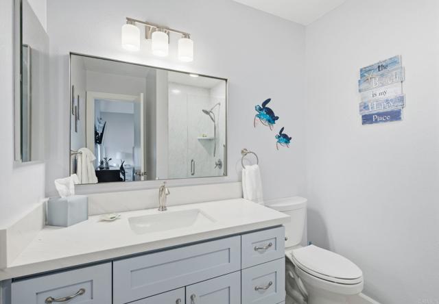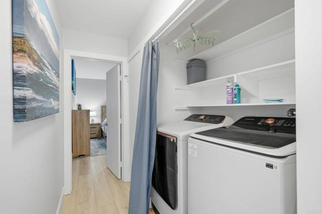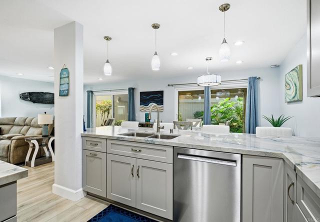 Welcome to this beautifully updated 2-bedroom, 2.5-bath condo in the gated community of Agua Hedionda west of I-5. This move-in ready home has been thoughtfully refreshed throughout with modern style and quality finishes. The remodeled kitchen features new appliances, sink, cabinets, countertops, and fixtures. Additional upgrades include vinyl plank flooring, recessed lighting, new dual-pane windows (including two new sliders downstairs), and modern window coverings. A convenient half bath on the main level offers a new vanity and toilet, along with a newly installed pocket door to maximize space. The interior has been freshly painted, including all doors and ceilings, and enhanced with new baseboards and casings. Upstairs, both bathrooms have been completely renovated with new shower stalls, vanities, toilets, and fixtures. Comfort is ensured year-round with mini-split heating and A/C units on the first floor and in both bedrooms. Enjoy indoor/outdoor living with a private patio accessible from both the living and dining rooms. Additional conveniences include indoor laundry, direct access from the attached garage, a designated parking space, and a locked storage cabinet in the garage. The community pool is located just across the parking lot, offering easy access for relaxation and fun. Interested in the furnishings? They are available to convey with the right offer. This property offers excellent potential as an investment opportunity, with the flexibility to be rented for 30 days or longer. Enjoy consistent rental income in a desirable location while maximizing return on investment. Move-in ready and ideally situated near the lagoon, beaches, shopping, and freeway access—this is coastal living at its best.