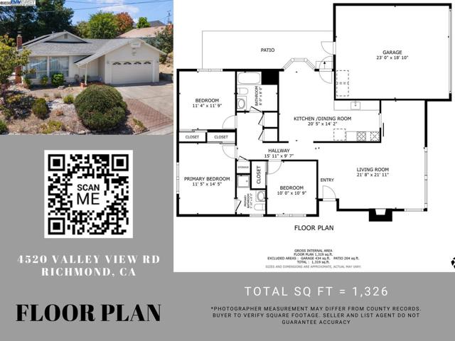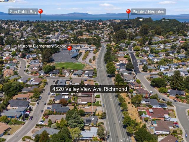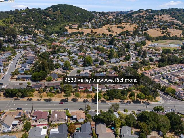 Bright, welcoming, and full of potential, 4520 Valley View Rd offers comfortable single-level living in the highly desirable May Valley neighborhood. The spacious living room showcases large picture windows, hardwood floors, and a classic brick fireplace that fills the home with natural light and warmth. The functional galley kitchen features generous counter space, ample cabinetry, and a dining area that opens directly to the backyard for easy indoor-outdoor living. Three well-sized bedrooms provide versatile space for a home office, guest room, or future improvements, while two full bathrooms offer room to personalize. Tesla solar panels help reduce energy costs, and the attached two-car garage includes additional storage plus the washer and dryer. The private backyard is ideal for gardening, play, or expansion possibilities. Located close to parks, top-rated hiking trails, schools, shopping, and commuter routes, this home combines convenience with opportunity. A great fit for first-time buyers, investors, or anyone seeking an East Bay property with excellent location and room to grow.
