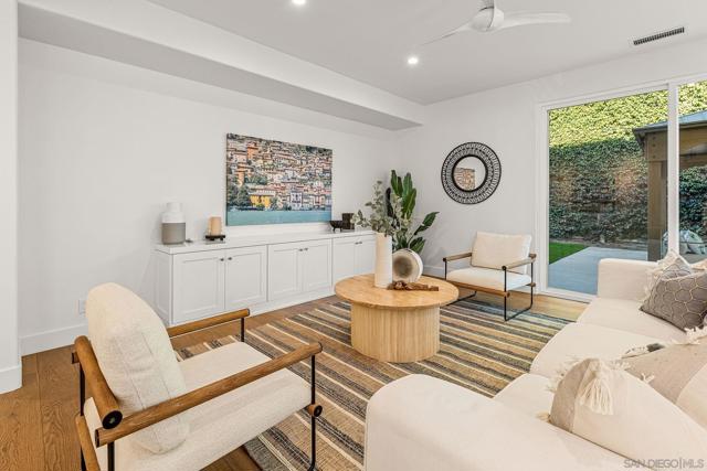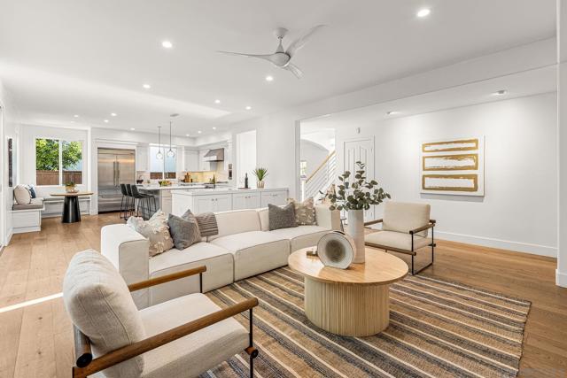 Gorgeous La Valle residence in Rancho Santa Fe (formerly Morgan’s Run)—stunningly remodeled with top-of-the-line finishes and meticulous attention to every detail. Completely upgraded throughout, this home features dual primary suites upstairs for ultimate comfort and flexibility. The open-concept kitchen and family room seamlessly connect to the outdoors through an impressive wall of glass doors, revealing a lushly landscaped backyard with an inviting pergola, plenty of turf for play and patio space for entertaining—your private paradise just steps from La Valle’s prestigious golf course. A stunning chef’s kitchen awaits, showcasing a spacious open layout with chef-grade JennAir appliances, including a 6-burner gas range and oven, refrigerator, and wine cooler. Crisp white cabinetry is beautifully paired with sleek quartz counters and a full backsplash for timeless appeal. At the heart of the space, a large center island illuminated by pendant lighting offers both function and style, while a built-in banquette creates the perfect spot for casual dining or gatherings. The formal living room features a cozy fireplace providing an immersive space of natural light and comfort. The main upstairs primary suite is a true retreat, boasting a resort-style bath with a multi-head walk-in shower and a generous walk-in closet, while the second upstairs suite offers its own luxurious accommodations. Three additional large bedrooms and a dedicated office offer plenty of room for family, guests, and work-from-home needs. With its unbeatable location, generous layout, and exceptional desig
