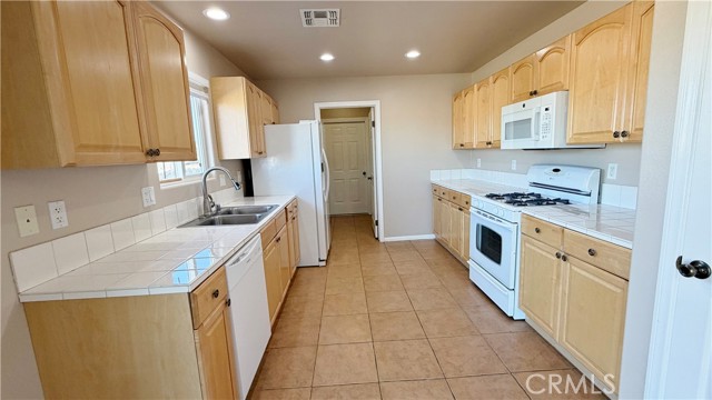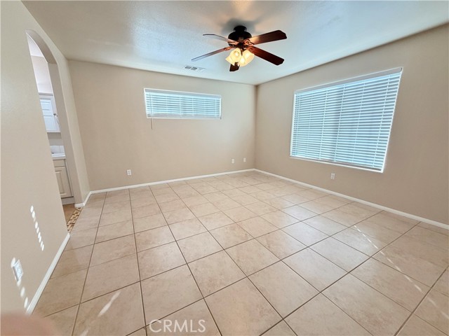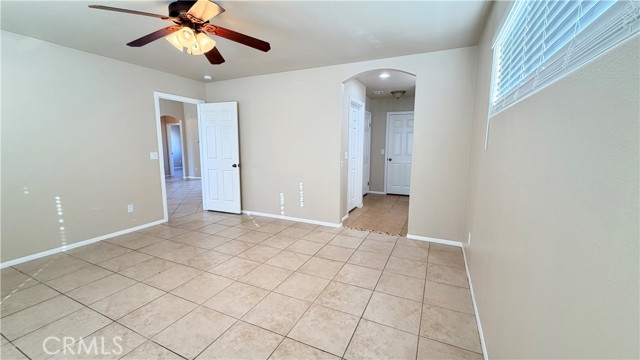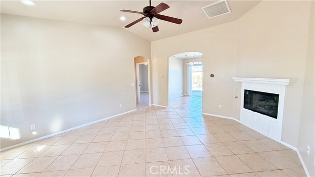 One of the best move in ready homes you’ll find at this price point—clean, well-maintained, packed with nice features and located just minutes from the entrance to Joshua Tree National Park. Inside, you’ll find tile flooring throughout, forced-air A/C, propane heat, and an additional mini-split unit in the living area for extra comfort. The living room features high ceilings, plenty of natural light, and a fireplace. The primary bedroom is a standout, offering two walk-in closets, separate linen storage, dual sinks, and a private bath area with tub, shower, and toilet. The split-bedroom floor plan gives everyone extra privacy. The kitchen offers plenty of storage, tile countertops, a pantry, and newer appliances, including the refrigerator. Off the kitchen is the dining area with slider to the ample backyard that extends beyond the chain link fencing. Every room comes with ceiling fans to keep things comfortable too. Enjoy the convenience of a separate laundry room with a washer and dryer included. Outside, the property features a front porch, concrete driveway with a turnout, and freshly painted fascia.