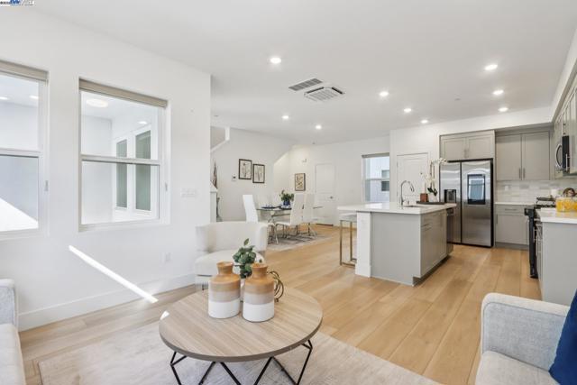 Experience this thoughtfully designed four-level floor plan that blends style, comfort, and convenience. The entry level includes a spacious two-car garage, while the main living areas unfold on the second floor with an open living and dining space that flows to a private balcony—perfect for entertaining or relaxing outdoors. All bedrooms are located on the third level, highlighted by the luxurious owner’s suite with a serene retreat, spa-inspired bath, and generous walk-in closet. The top floor features a versatile loft, ideal as a home office, media lounge, or creative space to fit your needs. Perfectly positioned within walking distance to the upcoming elementary school and BART, and just minutes from freeway access to I-680 and I-580, this home also offers close proximity to popular shopping centers, dining, and everyday conveniences—bringing modern living and lifestyle ease all together.