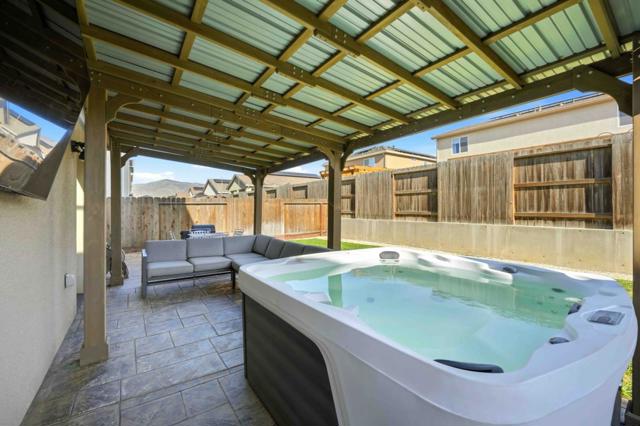 Take advantage of this fantastic opportunity to enjoy a move-in ready, 1,736 sq ft home built in 2023. This two-story home features four bedrooms, including a spacious primary suite, 2.5 baths, and an upstairs laundry room. The kitchen boasts granite countertops, stainless steel appliances, and a pantry. Owned solar panels contribute to energy-efficient living. The outdoor space, complete with a patio and awning, is perfect for entertaining or relaxation. This charming lane of homes, built by Nino Homes, is surrounded by mountain and valley views. Liberty Court offers an ideal blend of small-town neighborhood living with nearby shopping, schools, movie theater, dining, recreational activities, and easy access to Highway 101. Explore the local wineries or take a scenic drive to Pinnacles National Monument. Come see this exceptional home for yourself and experience all that this vibrant community has to offer!
