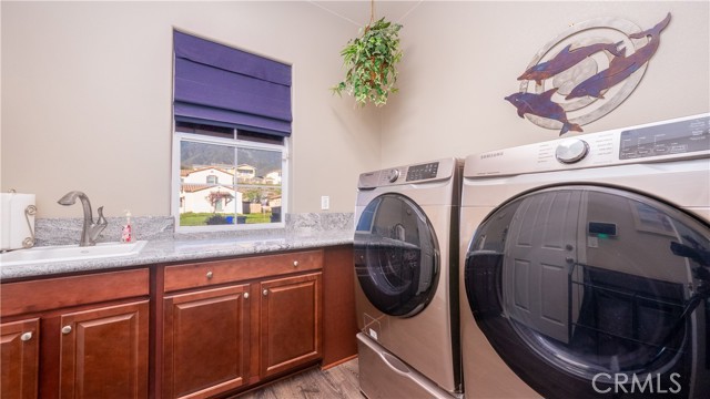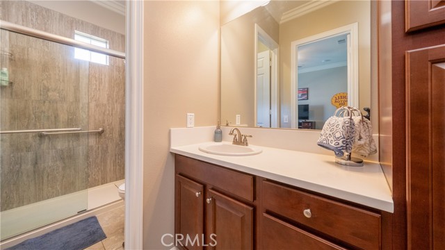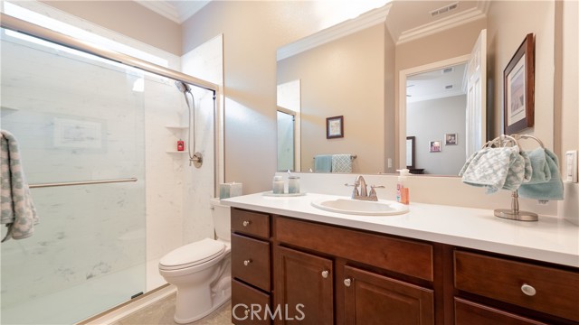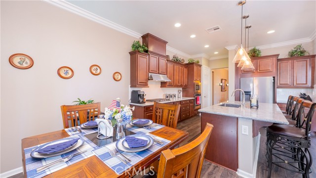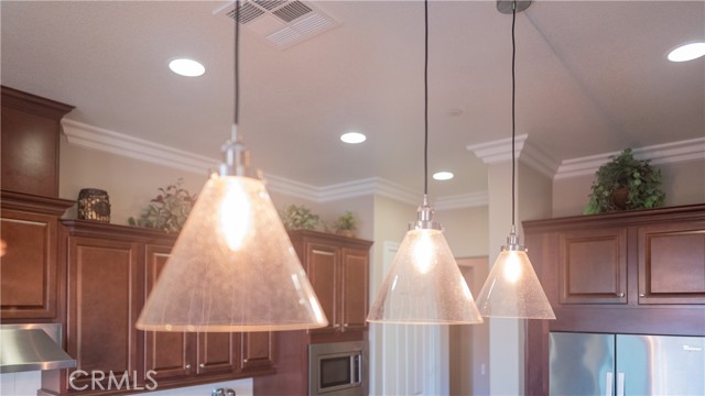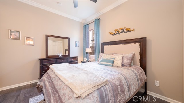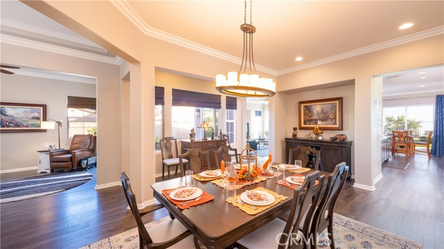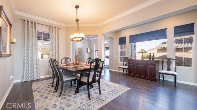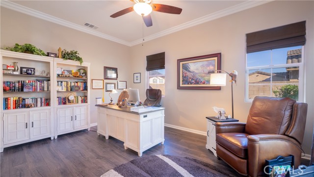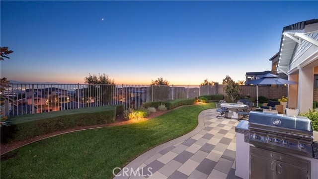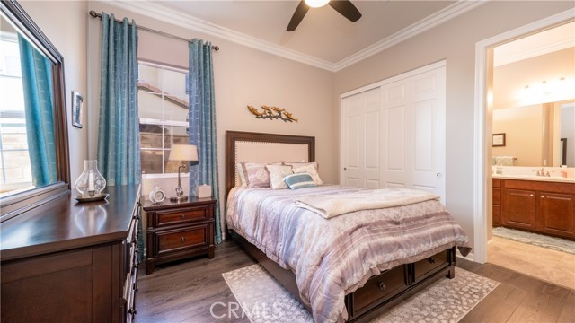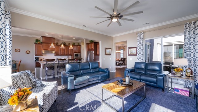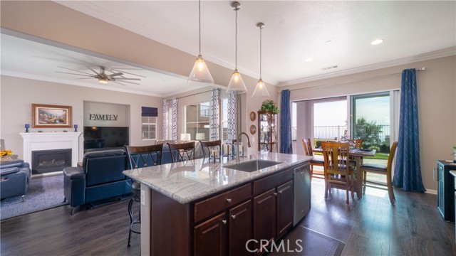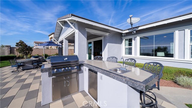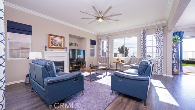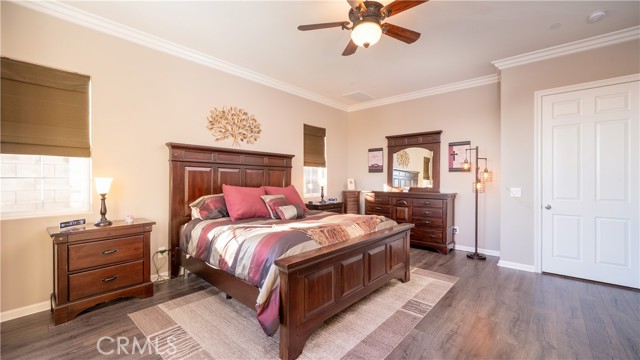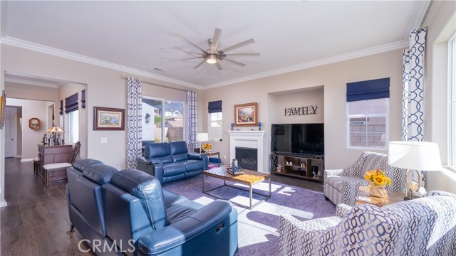 Rancho Etiwanda Estates Single Story with Unobstructed City Light & Mountain Views. This beautiful single-story home sits in Rancho Etiwanda Estates and delivers rare panoramic city light and mountain views. The curb appeal is impressive, featuring custom professional landscaping, hardscape lighting in front and back, LED lighting wrapped around the exterior, and fresh paint inside and out. A large, inviting front porch captures a perfect mountain view, & the Ring doorbell adds convenience and security. Inside, the home offers 3 bedrooms plus a dedicated office. Crown molding runs throughout. High-quality Pergo flooring adds warmth, & every bedroom features a ceiling fan with lighting. Each bedroom features an en-suite bathroom with a custom walk-in shower, detailed tile work, linear drains, & frameless glass doors. All closets feature upgraded organizers. The primary bath features a separate walk-in shower and oversized soaking tub, dual vanities, a makeup station, and a large walk-in closet with custom shelving and shoe racks. The office is a peaceful retreat with a ceiling fan and direct access to the serene center courtyard. A large formal dining room with a centerpiece chandelier sets the stage for gatherings. The family room includes a cozy fireplace with a mantle, an oversized ceiling fan, a media niche, and another access point to the courtyard. Natural light fills this home, keeping it bright and welcoming throughout the day. The kitchen opens to the family room and includes a breakfast nook with a panorama door that expands the indoor-outdoor experience. The kitchen features include a center island with a breakfast bar, granite countertops, pendant lighting, a new sink, stainless steel appliances, a cooktop with range hood, and a generous walk-in pantry. 10-foot ceilings create a sense of space and ease. The home also includes a full interior sprinkler system for added safety. The 3-car tandem garage with custom-built-in cabinetry, epoxy-coated floor, a workstation, tankless water heater, 2 sun-powered battery packs at 13 kilowatts each. 18 solar panels produce 430 watts each. The home is also wired for an alarm system. The backyard is designed for enjoyment, and the views are unforgettable. The panorama door leads out to a BBQ island, firepit, custom pavers, detailed landscaping, hardscape lighting, and a California room with fan and lighting. The mountain and city light views are unobstructed and some of the best you will find.