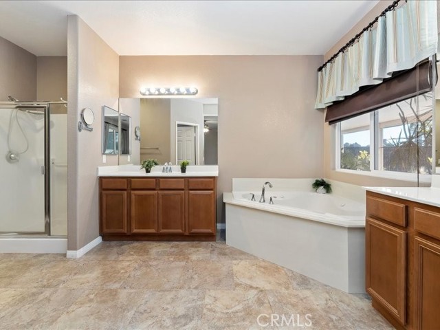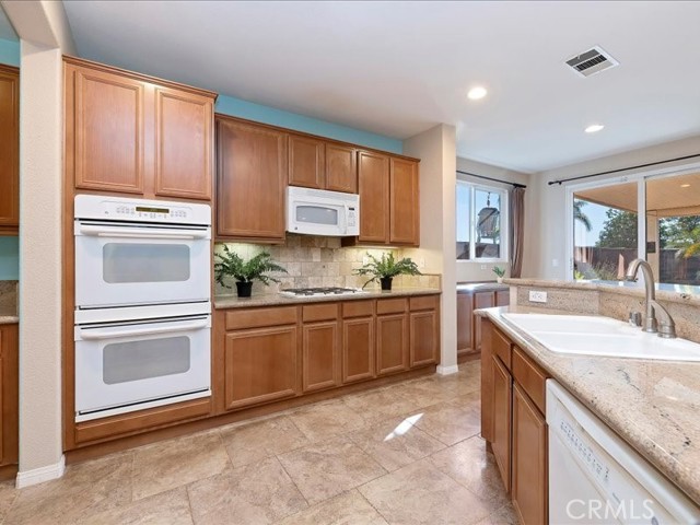 Welcome Home to 19069 Eldorado! Situated on a corner, 1/2 acre lot in the community of Boulder Springs, the desirable, sought-after area of Woodcrest! This gorgeous home is conveniently located close to Lake Mathews, Corona, Riverside, with the luxury of great dining and shopping minutes away from South Corona at Dos Lagos. Meticulously designed for comfort and functionality, this home offers an exceptional living experience indoors and out. As you walk through the grand double front doors, you are welcomed into a large foyer that flows seamlessly into the formal living room, dining room, and potential wet bar area, perfect for entertaining. Your spacious family room features a warm and cozy fireplace, an additional kitchen dining/nook area, surround sound, and opens up perfectly to the spacious chef’s kitchen. Tons of cabinet space, upgraded granite counters, double ovens, perfect for hosting, two pantries, and an oversized island. Custom tinted windows adorn this home with an abundance of natural light. The primary bedroom suite features a double-door entry, en-suite bathroom with dual vanities, a spacious soaking tub, separate shower, large walk-in closet and private backyard access. Enjoy your morning coffee or evening sunsets through the sliding doors with gorgeous views of the tranquil backyard. There are 3 additional spacious bedrooms and a full 2nd bathroom. This home also features a spacious and unique 4-car garage with tons of overhead storage, along with driveway parking for all your guests, making it ideal for car enthusiasts, hosting, or accommodating recreational vehicles. A dedicated laundry room offers a sink and even more storage, a great convenience for a busy lifestyle. Step outside and be captivated by the stunning drought-resistant backyard. The backyard features fruitless olive trees, lemon tree, a cozy fire pit, outdoor speakers, stamped concrete and a spacious covered patio that stretches the entire length of the home. This ideal space is perfect for year-round entertaining. The thoughtfully designed low-maintenance landscaping, complete with enhanced lighting, ensures easy maintenance and a high curb appeal. It also helps to reduce water usage. Located on one of the largest lots in the neighborhood, this home offers RV parking and even enough room to build your very own pool! This area is rapidly growing. Don’t miss this rare opportunity to make this your dream home today!