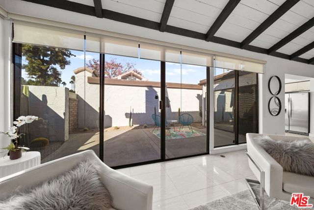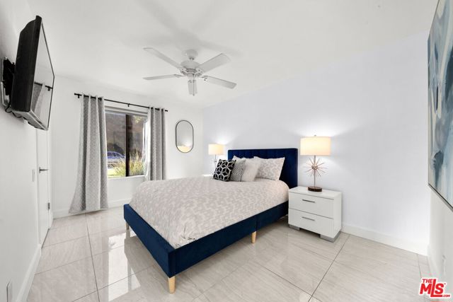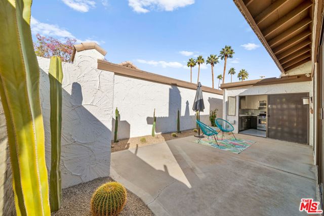 Welcome to Canyon Sands, conveniently located in south Palm Springs, next door to The Parker Hotel. Canyon Sands offers 299 single story, garden condo homes, seven pools and spas, tennis and pickleball courts with expansive lush grounds in an open setting. This highly desirable, updated floor plan "F" offers move-in ready conditions, featuring a new kitchen, new porcelain tile flooring throughout, fireplace, updated living space and updated bedrooms. New landscaping completes the gated and walled private patio which overlooks the currently green mountains in south Palm Springs. This home also features no common or shared living space walls and includes a primary suite and guest room with attached bath. The HOA dues include exterior maintenance, water, trash, sewer, and a Spectrum internet/cable tv package. Come and relax on your private, updated patio overlooking the mountains in south Palm Springs!