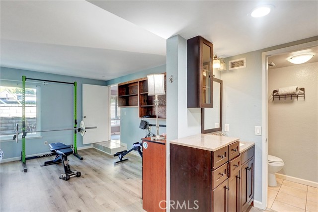 Welcome to this lovely 4 bedroom, 3 bath home, located in the North Valencia Racquet Club. With over 2000 square feet of living space, features include smooth ceilings, dual pane windows, copper plumbing, new solar system and much more. There's laminate and tile flooring throughout the downstairs area, a spacious living room with vaulted ceilings and a fireplace, a dining area with cabinets for storage, and a kitchen with a breakfast bar and recessed lighting. This floorplan also offers two primary bedrooms, with attached baths, one downstairs and one upstairs. There are 4 bedrooms, 3 upstairs and 1 downstairs. There are 3 bathrooms. There is a 2-car garage, storage closet under the stairs. The A/C ducts and vents were replaced in 2016. The HOA community features a pool, tennis courts, a basketball court and gated parks. And, this home is right next to one of the parks---perfect for outdoor activities and walking your dog. Close to schools, restaurants and shopping, this property has so much to provide and no Mello-Roos.