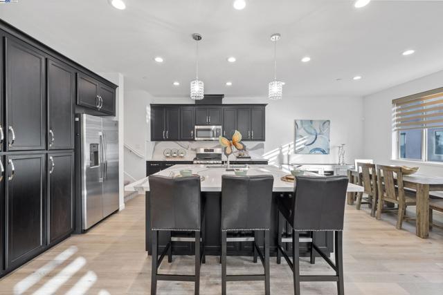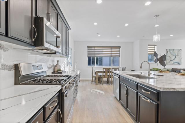 Welcome to modern, urban-style living in Dublin's sought-after Boulevard master-planned community! This meticulously maintained 3-bedroom, 2.5-bathroom corner end unit condo offers space of contemporary elegance with designer touches throughout. Built in 2020, this light-filled home features an open floor plan perfect for today's lifestyle. The chef-inspired kitchen boasts upgraded quartz countertops, a generous breakfast bar island, stainless steel appliances, and ample cabinetry. Premium upgrades include remote-controlled window blinds and a corner location providing abundant natural light. The main level offers a spacious great room flowing into the dining area and kitchen, plus a half bath. Upstairs, the primary suite provides a peaceful retreat with en-suite bathroom, while two additional bedrooms offer flexibility for family or home office. Modern laminate and tile flooring, 2-car attached garage, and tankless water heater complete this turnkey home. Boulevard Amenities: Resort-style clubhouse, heated lap pool/spa, fitness center, game room, BBQ areas, and playground. Prime Location: Top-rated Dublin schools, near Don Biddle Park, minutes to BART, I-580/680 access, also close by Stoneridge Mall & Livermore Outlets, plus dining and Iron Horse Trails
