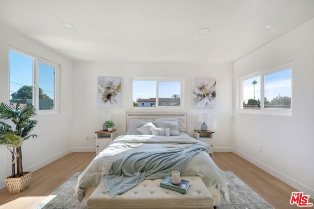 This refreshed 2-level, 5 bed, 4.5 bath beauty delivers incredible value in the heart of Los Angeles just minutes from the new rail line and moments from Downtown, Sofi Stadium, Intuit Dome, the Forum, and LAX. Updated in 2025, it offers the space, comfort, and convenience today's buyers love. Set behind a private gate, the home opens to a bright, airy living space that seamlessly connects to the kitchen and dining area, with sunlight pouring through oversized windows. The open-concept layout ties together the living room, family room, and dining room for easy everyday living and effortless entertaining. The kitchen features granite countertops, stainless-steel appliances, and plenty of cabinetry. Two ground-floor bedrooms each come with their own en-suite bathrooms perfect for guests or multigenerational living. Upstairs, three additional bedrooms and two bathrooms offer even more room to spread out, along with a dedicated office and a convenient hallway laundry area. The living spaces sit comfortably apart from the sleeping quarters, creating natural privacy throughout the home. A detached two-car garage plus a long driveway provides generous parking and a prime opportunity to build a guest unit or ADU. Homes with this much space, privacy, and flexibility at this price point are rare especially in a location this central. Ready to make your move? Book your private tour today. This one is a standout.