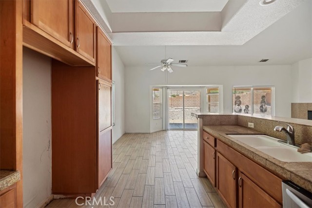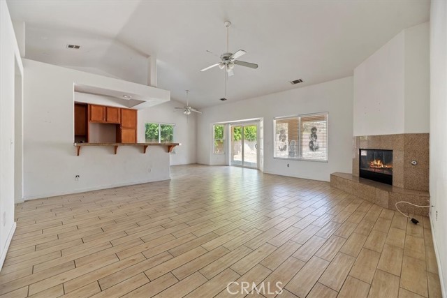 This inviting 1,837 sq. ft. home, built in 2005, offers comfortable living with beautiful desert mountain views. The open floor plan features attractive plank-look tile flooring in the main living areas and warm wood-look laminate in the bedrooms, providing easy, low-maintenance style throughout. High volume ceilings add a spacious feel, while a cozy fireplace creates a welcoming focal point. The bright, well-appointed kitchen is equipped with polished granite countertops, stainless steel appliances, a breakfast bar with pendant lighting, and generous cabinet space. The spacious primary bedroom includes a walk-in closet, double sinks, and an updated bath surround for a fresh, modern touch. Two additional bedrooms and a full guest bath offer flexibility for family, guests, or a home office. Enjoy the outdoors from the covered front porch or the private, block-walled backyard with a roomy patio—perfect for relaxing or entertaining. Additional features include a two-car garage, central air, and a durable tile roof. Located in the desirable Wardman Heights area, just a short drive from Mission Lakes Blvd.ocated j Located just north of Palm Springs, Desert Hot Springs is renowned for its naturally occurring hot mineral springs. The area features luxurious resorts and wellness spas that draw from these geothermal aquifers, offering a unique desert retreat experience.
