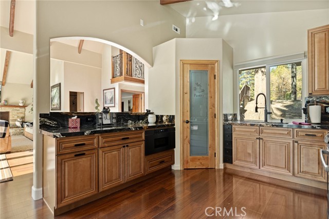 Welcome to this beautiful golf course frontage home, perfectly positioned at the end of a quiet cul-de-sac on the 15th Fairway. This sought-after Thunderbird floorplan offers an inviting open-concept design with vaulted, beamed ceilings and expansive windows that frame serene treed views and flood the home with natural light. Easy access with just a few steps to the main level, featuring the spacious living room with a stunning fireplace, an open dining area, and a gourmet kitchen. Enjoy top-of-the-line appliances, granite countertops, custom tile backsplash, and a dedicated wine refrigerator—ideal for cooks and entertainers alike. The main level also hosts the primary bedroom suite with a beautifully updated ensuite bathroom featuring a custom double vanity and a large tub/shower enclosure. Both the living room and primary suite open onto an oversized rear deck with peaceful views—perfect for morning coffee or evening gatherings. Downstairs offers a cozy family room that could function as a 4th bedroom, plus two additional guest bedrooms, a full bath, and a dedicated laundry room. This level opens to a second expansive deck with ample room for entertaining while enjoying the gorgeous natural surroundings and peek-a-boo views of the fairway below. Level entry from the cul-de-sac brings you into the two-car garage complete with epoxy flooring and abundant storage. The beautifully stamped concrete driveway adds to the home’s charm and curb appeal. Well cared for and thoughtfully designed, this mountain escape checks all the boxes. Don’t miss your chance—homes like this rarely last!