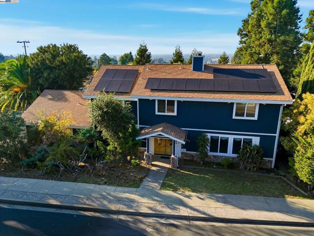 Located in the desirable Fairview/Hayward Hills, this spacious 4-bedroom, 2.5-bath home offers 2,576 sq ft of living space and owned solar panels. Sold as-is, it’s a great opportunity to customize and make it your own. Situated on a scenic corner lot, the property features mature trees, well-kept landscaping, and great curb appeal. living room with a wood-burning fireplace and picture windows, a roomy kitchen with ceramic tile counters, a center island cooktop, and abundant cabinet storage. The dining room is accented by a chandelier and large windows, and the expansive family room opens to a private balcony. The upper level includes three spacious bedrooms sharing a hallway bath, plus a generous primary suite with an ensuite bath and its own balcony. Additional features include an attached 2-car garage and side access suitable for a small RV or boat. Enjoy easy access to shopping, Cal State East Bay, HWY 92/San Mateo Bridge, HWY 880, and HWY 580.