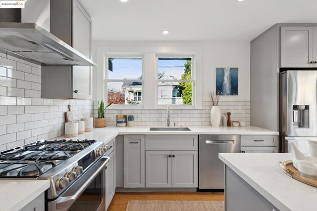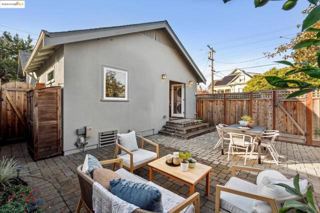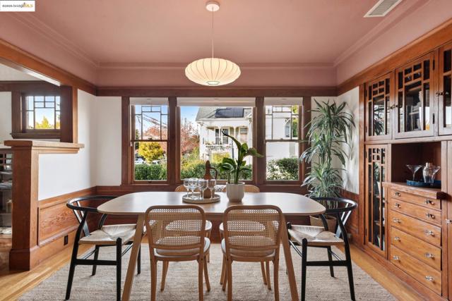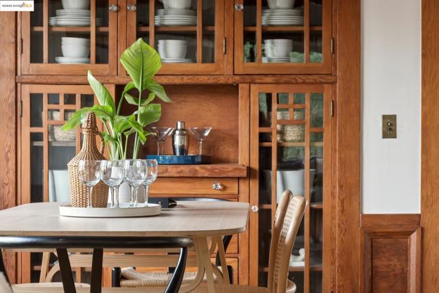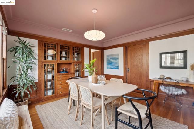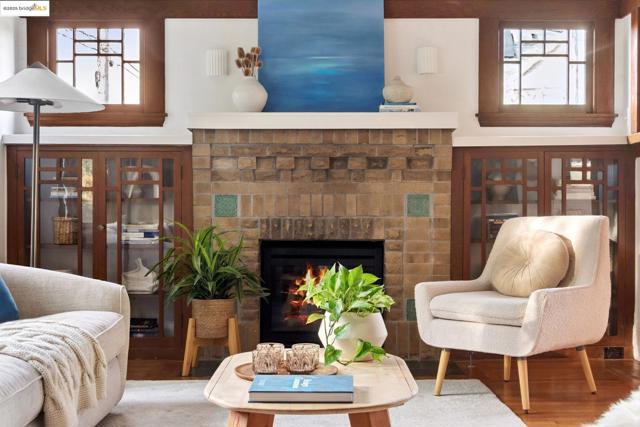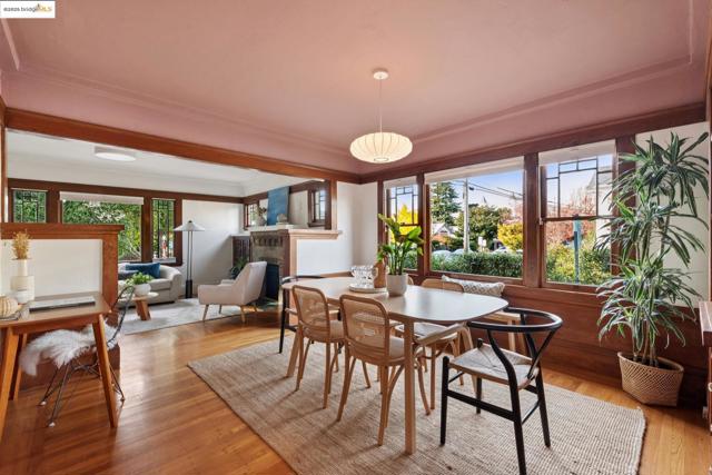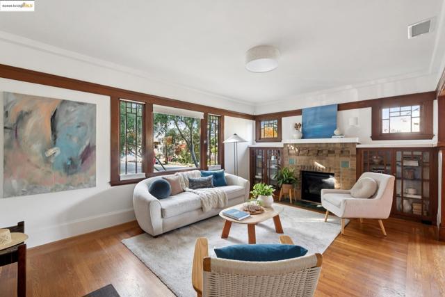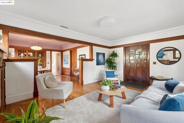The Berkeley Craftsman of your dreams; all of the 1920s charm, yet with updated, modern systems throughout. You'll be drawn to the thoughtfully designed, established garden; the front yard is lush yet low-maintenance, while tall pittosporum flanks the side of the home, filtering light delicately while providing privacy. Enter into the living room, featuring original trim and molding, hardwood floors and a centerpiece fireplace with gas insert. A formal dining room stuns – with a never-been-painted built-in, ample sunlight, and a two-way swinging kitchen door. And speaking of the kitchen; newly, tastefully remodeled, with cabinets in a soft gray-blue and effortless indoor/outdoor flow. Two sizable bedrooms sit on either side of the enlarged and remodeled bathroom, adorably redone with Fireclay tile, natural wood vanity and designer touches. The backyard offers perfect outdoor ease; hardscaped and private, with native plantings and fruit trees. And you will spill outside into Berkeley, effortlessly, as this home sits just blocks from coffee, eateries, parks, and BART. Centrally located, vintage perfection, yet delightfully turnkey.