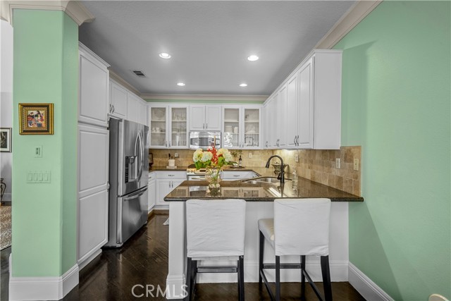 Welcome to this beautifully maintained home in the highly desirable gated community of Greystone Keys in Huntington Beach. Ideally situated on a quiet interior lot, this spacious 3-bedroom, 2.5-bath residence has been meticulously cared for and backs to a peaceful greenbelt with no neighbors directly behind you. Featuring 1,650 sq. ft. of thoughtfully designed living space, the home offers a light and bright layout with soaring cathedral ceilings and abundant natural light. The formal living and dining areas provide an elegant setting for entertaining, enhanced by a warm, cozy fireplace. The upgraded kitchen includes granite countertops, stainless steel appliances, a breakfast bar, and opens seamlessly to the inviting family room. Downstairs also includes hardwood flooring and a convenient guest half bath. Upstairs, the spacious primary suite showcases crown molding, a walk-in closet, dual vanities, a soaking tub, and a separate shower. Two additional bedrooms share a full bath, and a dedicated laundry room with upper cabinets adds extra convenience. The backyard offers ample space to relax, entertain, or garden. An attached 2-car garage provides direct access and additional storage. Greystone Keys offers resort-style amenities including a gated entrance, pool, spa, wading pool, lush greenbelts, and guest parking. The community is just steps from Peter Green Park, featuring tennis courts, basketball, volleyball, a playground, and a dog park. Shopping and dining at Five Points Plaza, Trader Joe’s, and surrounding restaurants are only a short walk away. You're also just 3 miles from the beach, HB Pier, Pacific City, and the vibrant Main Street district. Served by top-rated schools—Seacliff Elementary, Dwyer Middle, and Huntington Beach High—with low HOA dues and no Mello-Roos, this is an exceptional opportunity to own a turnkey home in one of Huntington Beach’s most sought-after gated coastal communities.