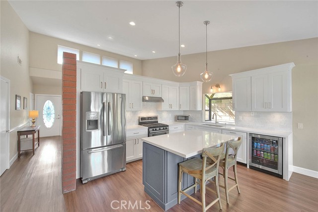 Located in the highly desired Chino Hills neighborhood, this beautifully updated SINGLE STORY home features 3 bedrooms, 2 baths and spacious living areas. Upon entering, you will appreciate the high ceilings and natural light throughout. The living room, centered around the warm brick fireplace, is the perfect space for relaxing. The remodeled dine-in kitchen offers plenty of fresh white cabinets, quartz countertops with center island and stainless steel appliances, including a built-in beverage fridge. The home has a spacious primary bedroom with ensuite bathroom, 2 secondary bedrooms and a full bathroom. The permitted sun room is the perfect space for an at home gym or office. The spacious backyard offers plenty of room for entertaining. You don't want to miss the opportunity to make this house your new HOME!