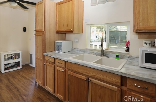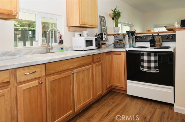 This renovated gem offers a blend of comfortable living. Nestled on a desirable corner parcel, this home features charming chain-linked fencing that adds both curb appeal and security. Step inside to discover an open layout bathed in natural light streaming through all-new windows that perfectly frame your serene surroundings. The stylish kitchen is a true showstopper with gleaming new cabinets offering ample storage, and pristine countertops providing plenty of prep space for culinary adventures. Every inch of the bathroom has been thoughtfully updated, boasting contemporary fixtures and finishes for a spa-like feel. Ease into relaxation knowing major updates like the new water heater offer efficiency and peace of mind. The spacious lot invites outdoor gatherings or gardening endeavors while maintaining a sense of privacy. Whether it's enjoying morning coffee on your porch or entertaining family and friends indoors, this home promises comfort at every turn. Perfectly situated close to local amenities yet nestled in tranquil settings, this property embodies Clearlake Oaks' charm while offering modern conveniences—a rare find awaiting its lucky new owner!