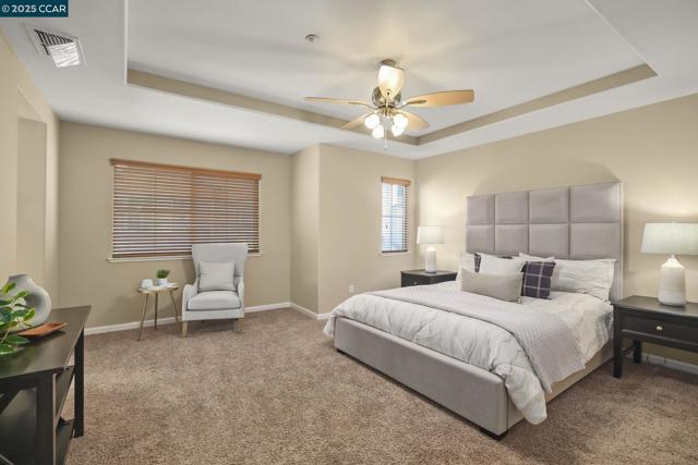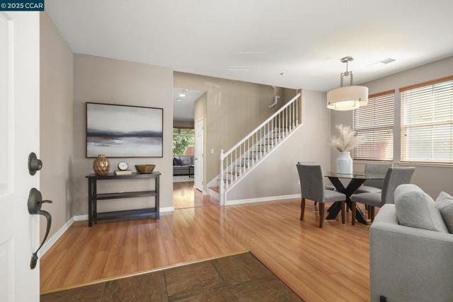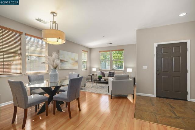 Beautifully updated home in the Rose Gate community of Livermore with 3 bedrooms, 2 ½ bathrooms, large loft area which is a 4th bedroom option, gourmet eat-in kitchen with island, cherrywood cabinets, stainless steel appliances, built-in bar area with 2 mini refrigerators, windowed cabinets with tasteful lighting leading to the family room with fireplace and access to backyard with pavers, covered patio with shades and fan, sink, refrigerator and lawn area with play structure. Engineered wood flooring in Family room, living room and dining room. Large primary bedroom with ceiling fan, walk-in closet and separate soaking tub and stall shower. Home offers large 2 car garage and is located at the end of the street, on the east side of Vasco road and blocks from Sunset Park, close to shopping, dining, schools and freeway access.