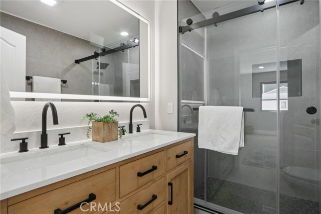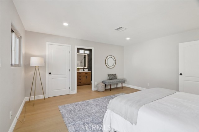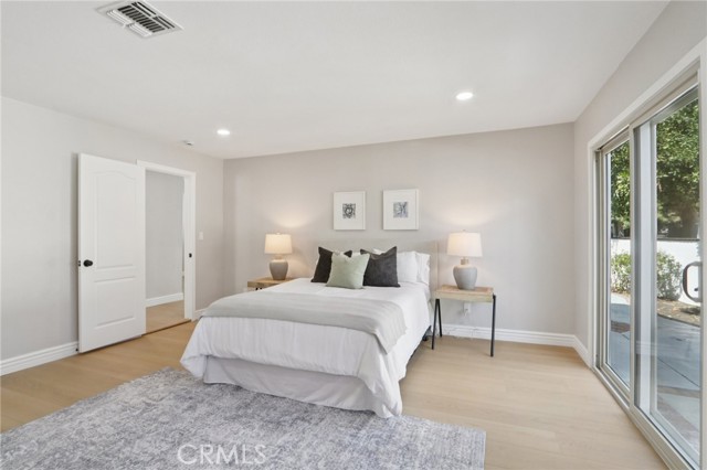 Beautifully renovated Granada Hills gem situated on a spacious corner lot. This single-story home boasts a modern open-concept layout with brand-new interior and exterior paint, a new roof, and upgraded laminate flooring throughout. The stunning chef’s kitchen is the centerpiece of the home, featuring a 9-foot waterfall island with granite countertops, added cabinetry and pantry space, and sleek recessed lighting that flows seamlessly into the living and dining areas. Offering two primary suites and three fully remodeled bathrooms, this home is designed for comfort and flexibility. Every detail has been thoughtfully updated, including a 200-amp electrical panel, new garage door, fully drywalled garage with epoxy flooring, and recessed lighting. With its huge lot, curb appeal, and high-end finishes, this move-in-ready property is the perfect blend of modern design and everyday functionality.