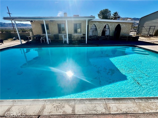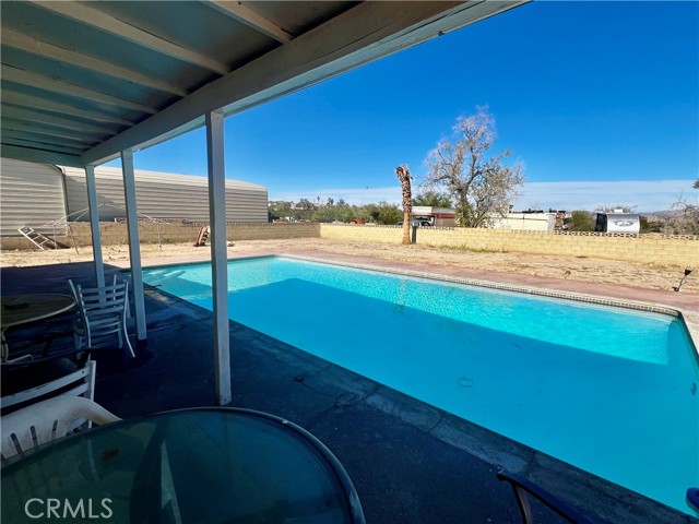 Welcome to 74284 El Paseo Dr. in 29 Palms, a spacious three-bedroom, two-bath pool home offering approximately 1,788 square feet on an expansive 1.25-acre lot. While the home could benefit from some light TLC, it already has a strong foundation of desirable features, including all-tile flooring for easy maintenance and updated dual-pane windows throughout. Two bedrooms and one bathroom sit on one side of the home, while the opposite wing offers a unique oversized bedroom suite that could be used as-is or potentially reconfigured into two smaller bedrooms with a living area—an excellent option for those needing flexible space. The kitchen includes upgraded stainless steel appliances, and the home offers multiple heating options with a pellet stove, wood-burning stove, and central HVAC on the opposite side. The impressive wood-beam ceilings highlight craftsmanship that’s becoming rare to find. Outside, you’ll find a fantastic in-ground pool, a covered patio, and a fully walled backyard for privacy. A standout amenity is the huge workshop/garage equipped with 220V power, dual oversized roll-up doors, and approximately 1,200 square feet of space, plus an additional carport with a solid foundation. For buyers with recreational vehicles, tools, or equipment, this setup is exceptional. Additionally, the home next door—and the connecting lot beside it—will also be available, creating the potential opportunity to assemble a multi-property family compound. With a little polish, this home is a true diamond in the rough offering space, utility, and tremendous potential.