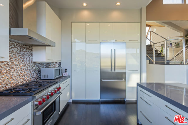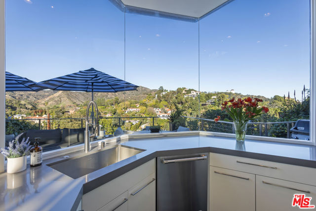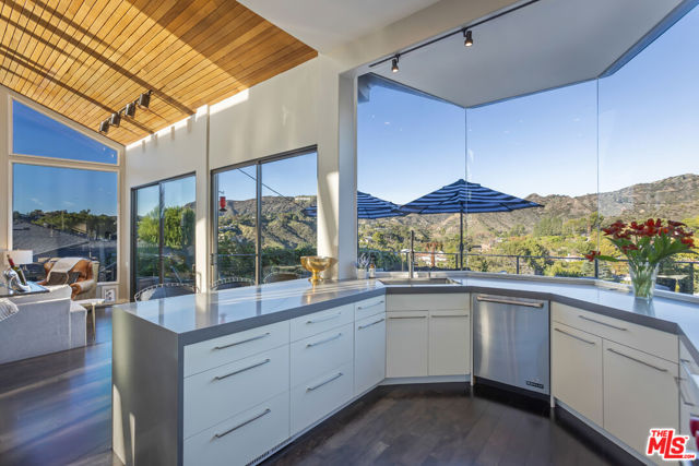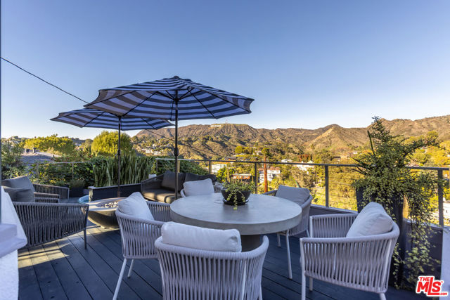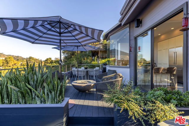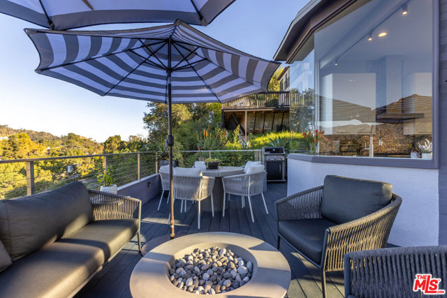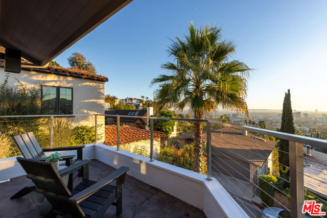Soaring Architectural living in the Hollywood Hills. This striking 3 bedroom, 3 bathroom residence sits high above the street in the prestigious Los Feliz Oaks, inspired by cutting-edge design and infused with modern architectural detail. Walls of glass frame sweeping views from the Pacific Ocean to Century City and across the entire cityscape, including unforgettable vistas of the Griffith Park Observatory and the Hollywood sign. Every room is filled with natural light, honoring the architect's intention to capture Los Angeles from every angle. The open floor plan offers effortless modern living with a true indoor and outdoor flow. The chef's kitchen features Caesarstone countertops, a Wolf range, and stainless steel appliances. Living and dining areas open to a private deck with a spa, creating an ideal space to relax or entertain. The oversized primary suite includes an en suite bath and walk-in closet. A versatile loft adds options for a home office or creative retreat, and a separate laundry room offers excellent storage. Moments from the studios, Griffith Park, and downtown Los Angeles.