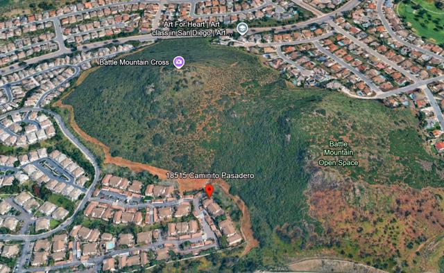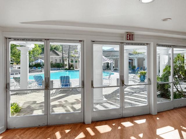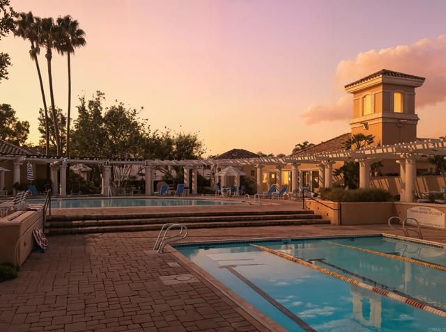 DISCOVER THE BEAUTY BEHIND THE GATES OF VISTA DEL LAGO! One of the best locations-secluded, backing to green space with Battle Mountain views, GARAGE, no adjacent building, south facing living room windows coupled with high ceilings the home is drenched with natural light. This popular open floor plan includes a cozy fireplace, Dual primary suites-walk in closet, upgraded countertops and remodeled walk in shower. One wall of secondary suite has a built in library with a remote controlled bed that comes out of the large lower drawer. Remodeled kitchen with granite countertops and stainless steel appliances including newer 2024 dishwasher. Newer laminate wood tone flooring throughout. Full Size hall closet holds a side by side washer/dryer with cabinets. Spacious covered patio to enjoy the views including a large storage closet. This lower unit has a convenient LARGE garage which provides room for a car and plenty of storage located steps from the patio for easy access for coming and going. Enjoy the multi million dollar premiere recreation facility including 2 pools (one a heated lap), 2 spas, 4 lighted tennis courts - pickleball, exercise room, changing rooms, billiard room, banquet room and more. In addition, Morada residents enjoy their own pool/spa and EV CHARGING station. Part of the distinguished Poway Unified School District, Vista Del Lago is located near the Lake Hodges hiking trails and very close to the San Pasqual vineyards and Westfield's shopping center.