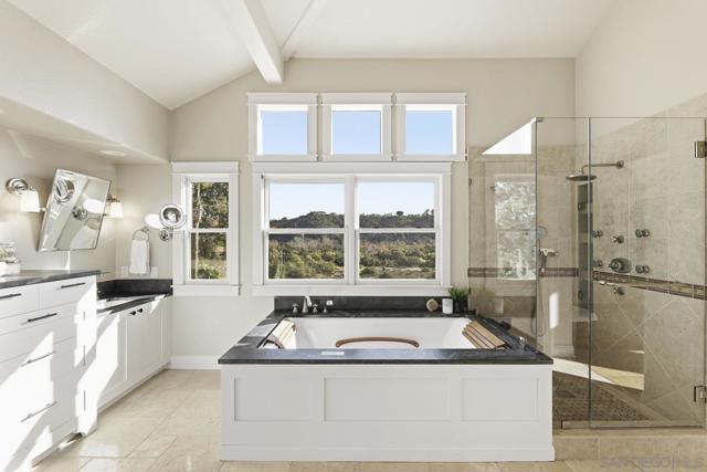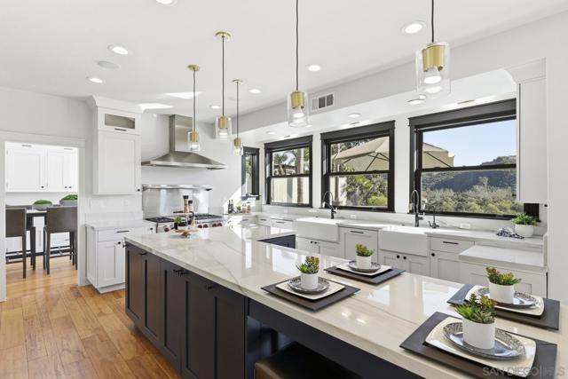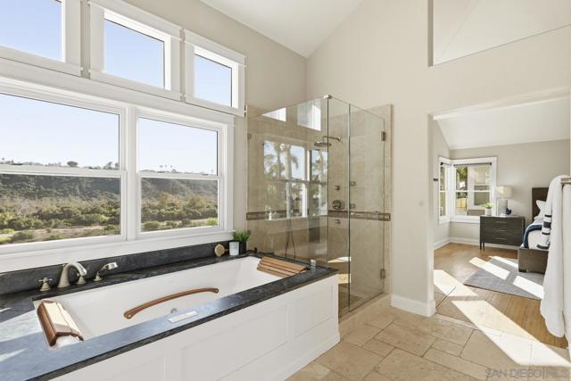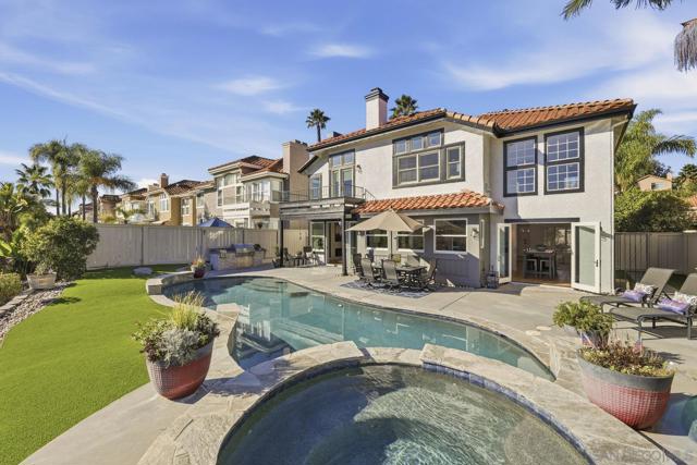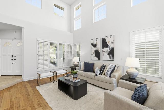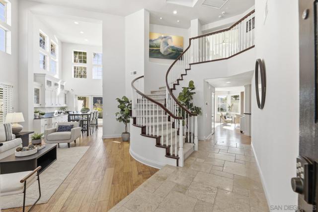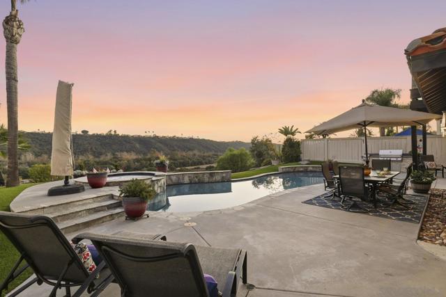 Imagine waking to canyon sunlight streaming through your primary suite, coffee on your private balcony overlooking the preserve. This is the home you've been waiting for—where your chef's kitchen opens to endless canyon views, where your kids play safely in the pool, where sunset happy hours become your new ritual. Every upgrade whispers quality. Every room frames nature. The curved staircase welcomes you home. The spa beckons after long days. Solar panels work silently, saving you money. And that preserve backdrop? It's yours forever—no neighbors, just nature. This isn't just Park Village's finest. It's your next chapter. Your sanctuary. Your dream, waiting. Home Upgrades: Paid solar installed 2024 - New roof installed 2024 - New Carpet installed 2025 - Flush recessed LED lights throughout - New water heater installed 2024 - New dual HVAC system 2024 - Entire interior painted 2025 Newer PebbleTec saltwater pool - New pool heater installed 2025 - Newer artificial turf front and back - Fireproof vault in garage … new garage doors installed 2024 - Handscraped Hickory hardwood floors. Kitchen: 2 farm sinks - 2 stainless dishwashers - 2 stainless microwaves - 2 Miele stainless convection ovens - Monogram, cabinet depth refrigerator - 2 Sub-Zero cabinet freezer drawers - 6 burner Wolf cooktop and griddle Beverage/espresso wet bar with Miele Espresso Machine - Commercial style ice maker - 14' eat-around island - Cabinets are soft-close and equipped with pull-out shelves. Dining Room and Primary Suite: The dining room contains wall to wall built-in buffet with black Soapstone counter, built-in warming oven, and French doors leading to backyard pool, patio and that inspiring view! The master bedroom has French doors leading to a balcony overlooking the beautiful pool and Los Peñasquitos Canyon Preserve. The master bathroom features a spacious shower and luxurious air spa tub and walk in closet with closet organizer.