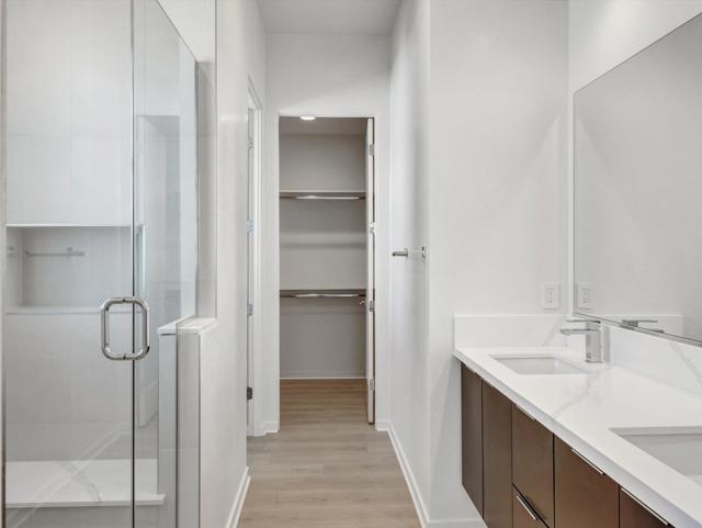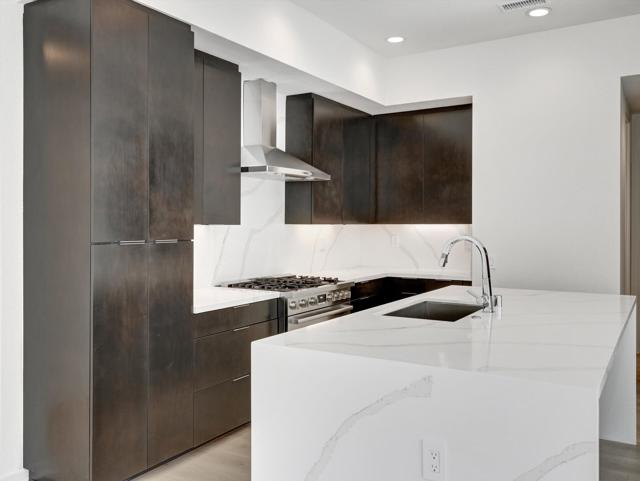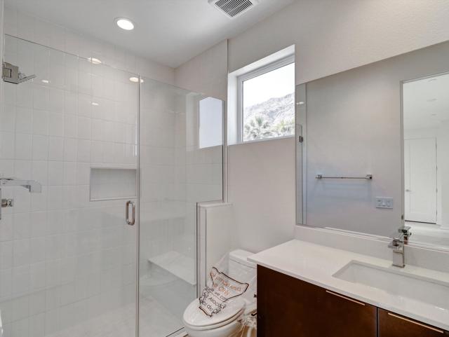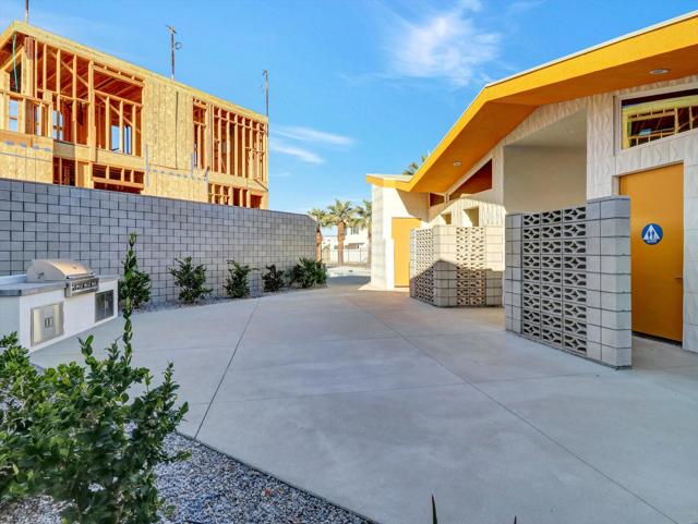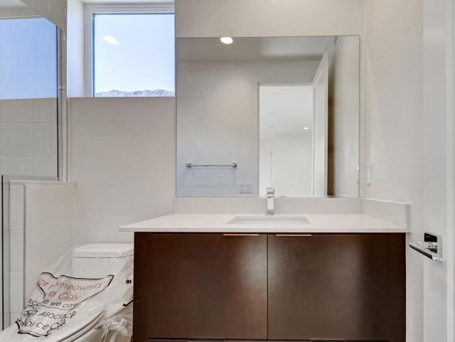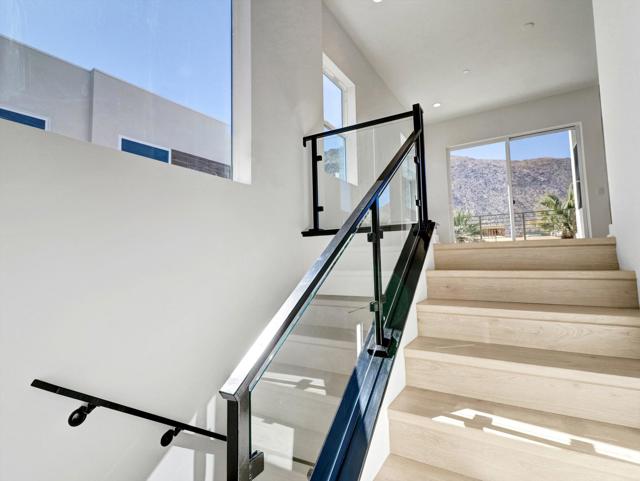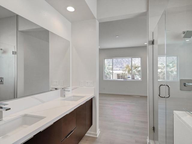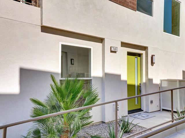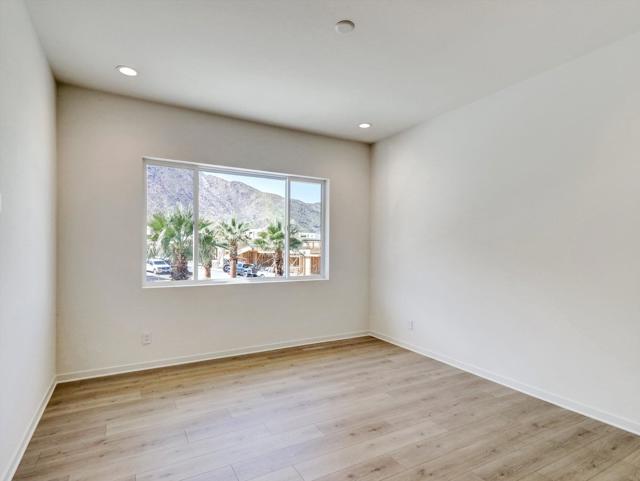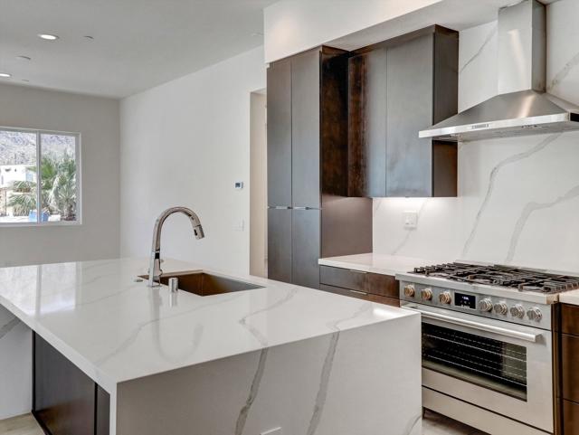 Welcome to Retro at E'lan Community and its offering of a mid-century modern townhome. This beautiful townhome features 1750 sqft of spacious living. This corner unit offers convenient location to the community pool and spa. This unit offers mountain Views from the living room, primary bedroom, and outside deck. Enter into 1st floor flex room and full bathroom which can be used as an office or gym! Head upstairs to the open family/living room and large kitchen featuring S/S Appliances, plenty of counter space, and island covered with upgraded quartz with water fall finish at island. Primary bedroom and bath with conveniently spacious walk in closet and dual vanities. Head down the hall to cozy guest bedroom with full bathroom. The home has Georgius Luxury Vinyl Plank Flooring throughout. This energy efficient home comes with Solar that is paid for and not leased. Paved shared driveway entering into 2 car garage offers direct access to your home. If you have a dog, you can enjoy the dark park included at elan. If you enjoy the nightlife, you are within walking distance to downtown South Palm Springs and all the restaurants and entertainment to keep you and your guest happy. Plenty of hiking trails starting with the Tahquitz Hiking Trail. The unit is part of a 5-unit building. Come be part of the story at Retro at E'lan Downtown Palm Springs! SOME PICTURES ARE OF MODEL HOME AND NOT OF SUBJECT PROPERTY..