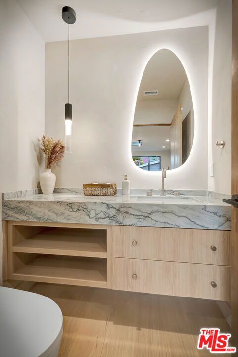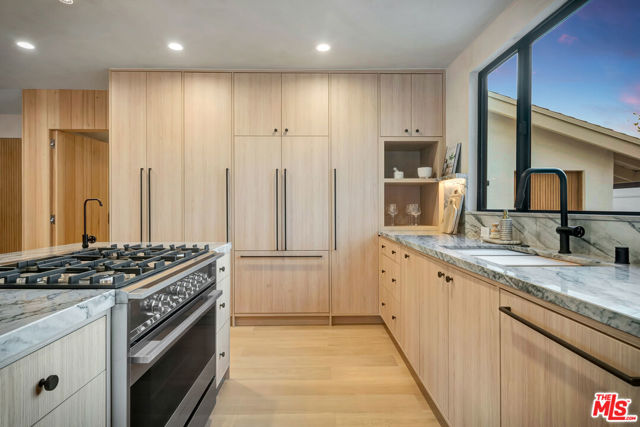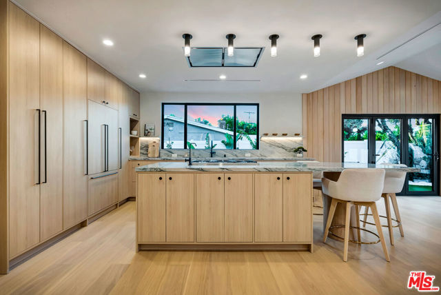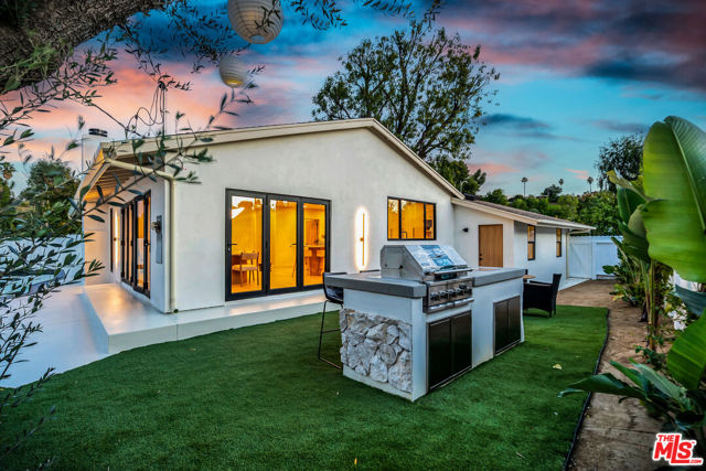 Rebuilt and reimagined from the studs, this stunning 4-bedroom, 3.5-bath residence exemplifies modern sophistication, superior craftsmanship, and timeless design. Every detail has been thoughtfully curated to create a seamless blend of luxury and functionality. The open-concept floor plan is filled with natural light and highlighted by smooth plaster walls and vaulted ceilings.The spacious living room features a striking wood paneled feature wall and custom fireplace that adds depth and sophistication. Perfect for both everyday living and entertaining, the seamless flow connects the living, dining, and kitchen areas effortlessly. The gourmet kitchen is a true centerpiece, featuring high-end appliances, designer fixtures, and a large center island. Sliding glass doors lead to a beautifully landscaped backyard retreat, complete with sparking pool, custom-built BBQ, firepit, and integrated sound system. Nearly every element of the home has been upgraded, including brand-new electrical, plumbing and HVAC systems and more. Other amenities include two primary bedrooms, a stunning powder room and a dedicated laundry room. Located close to premier shopping, dining, and entertainment this exceptional property offers the perfect combination of luxury, comfort, and convenience a rare opportunity to experience refined Woodland Hills living at its finest.